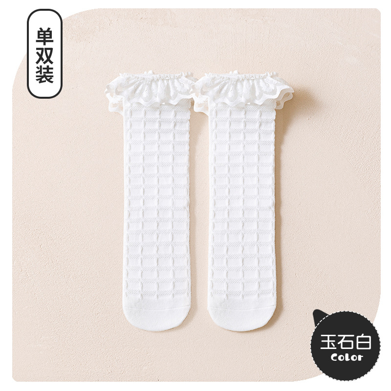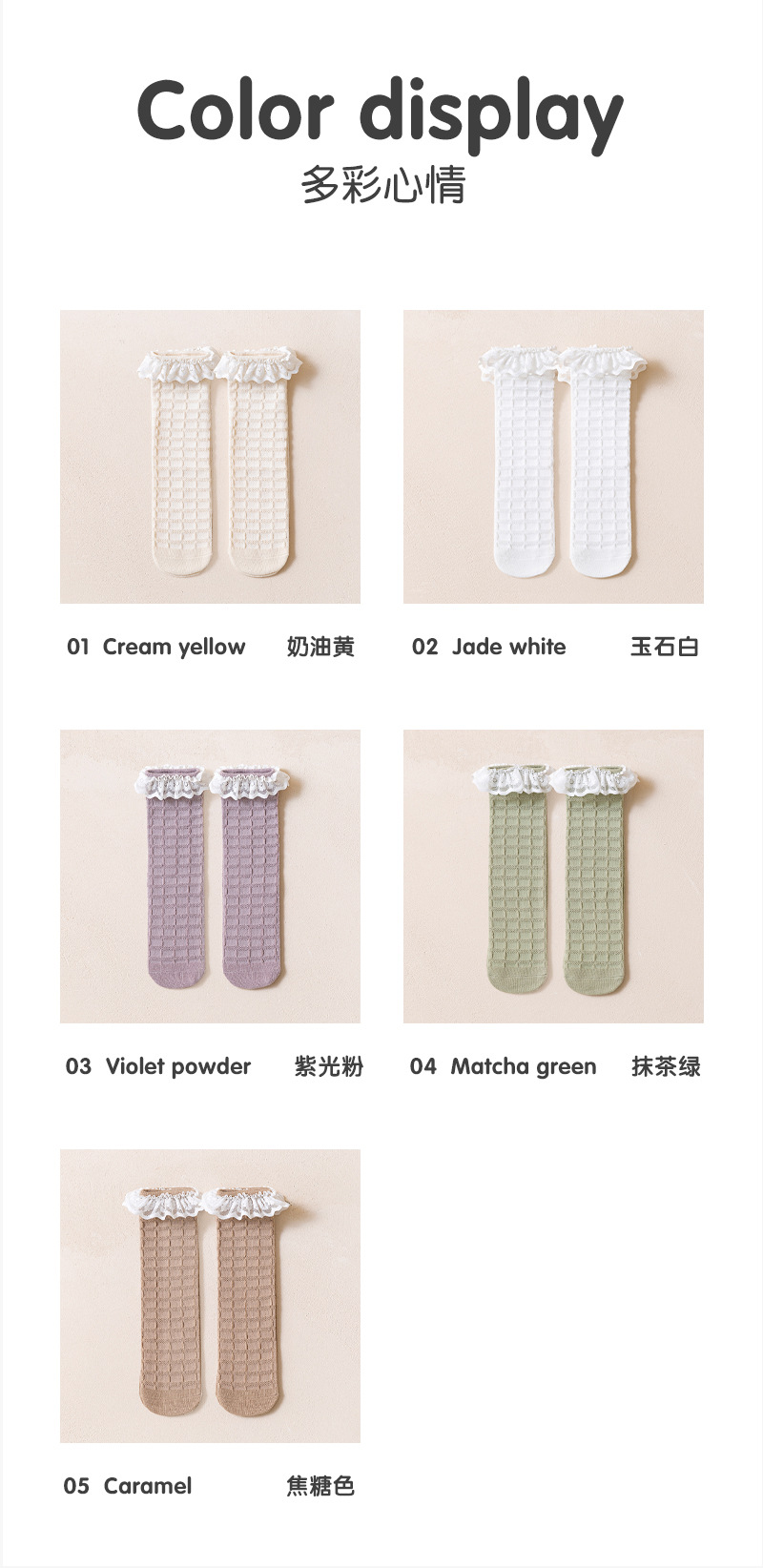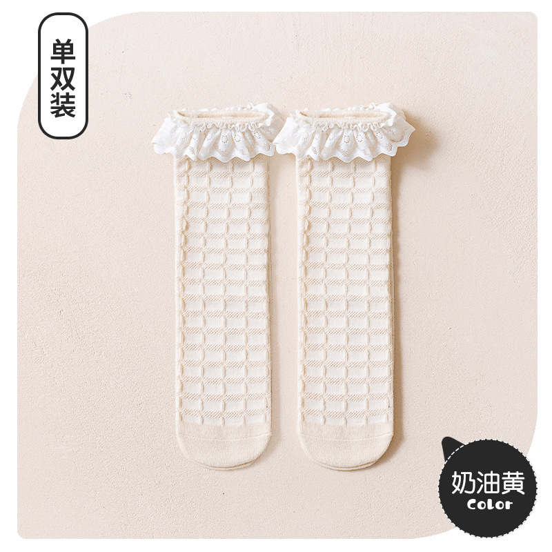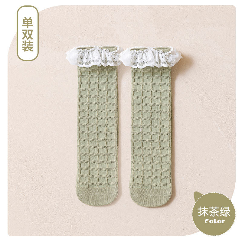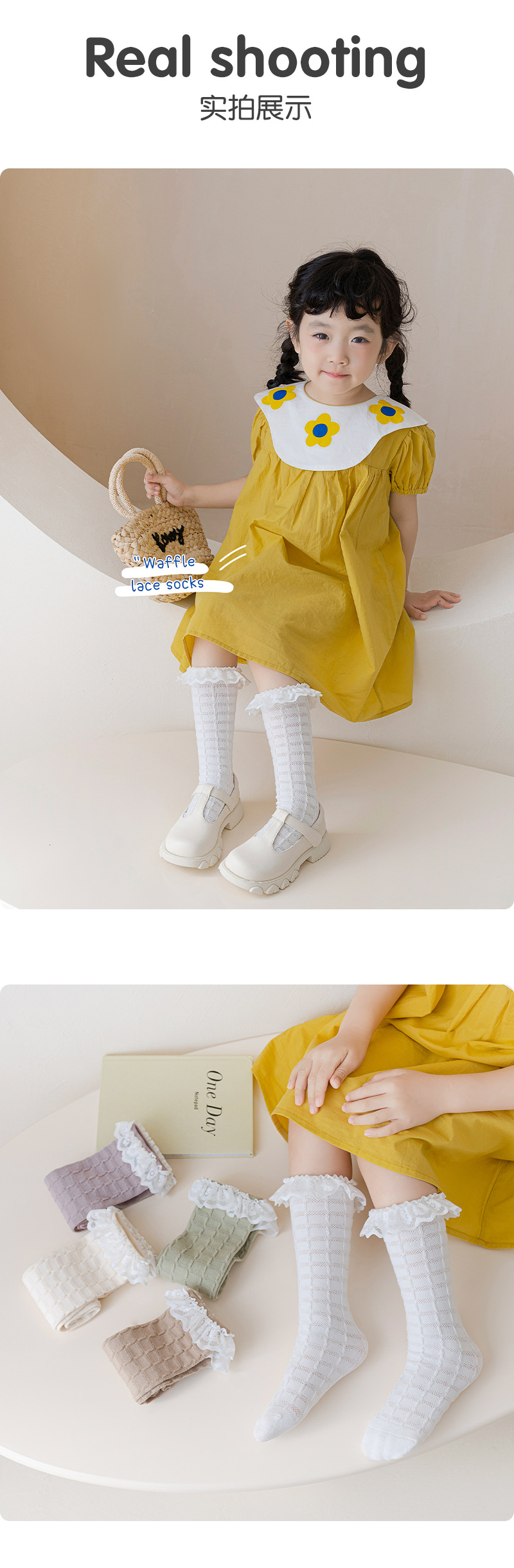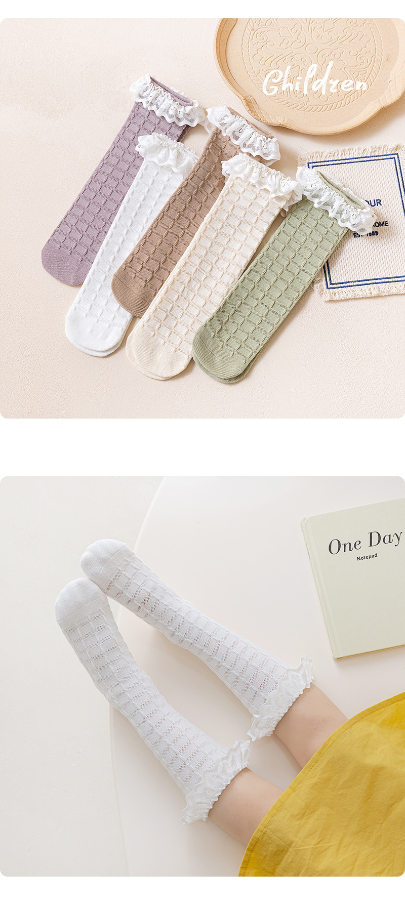어린이 와플 레이스 양말 봄과 여름 2023 로리타 패턴 공주 단색 여아 송아지 양말 스택 양말