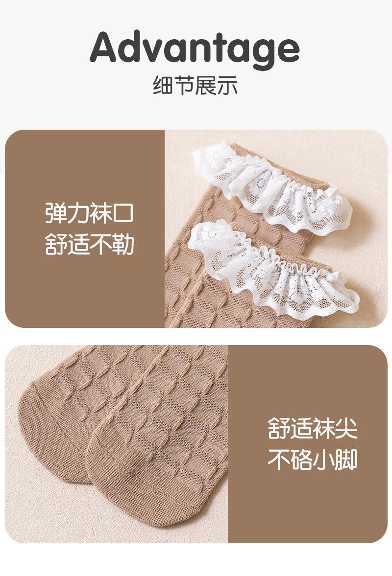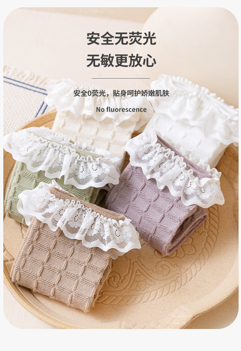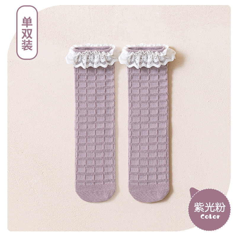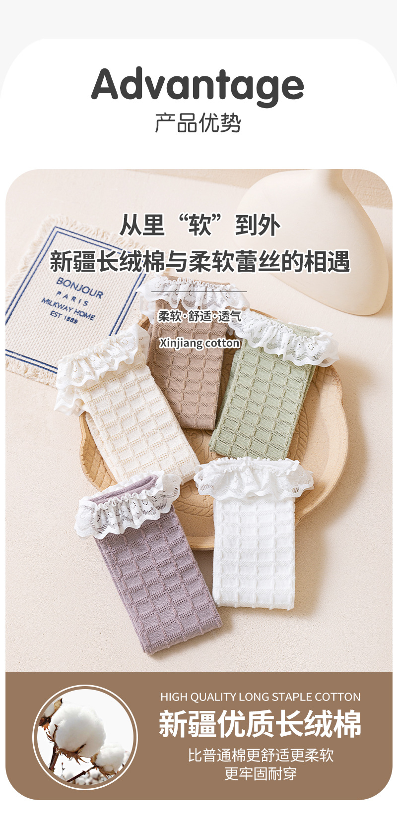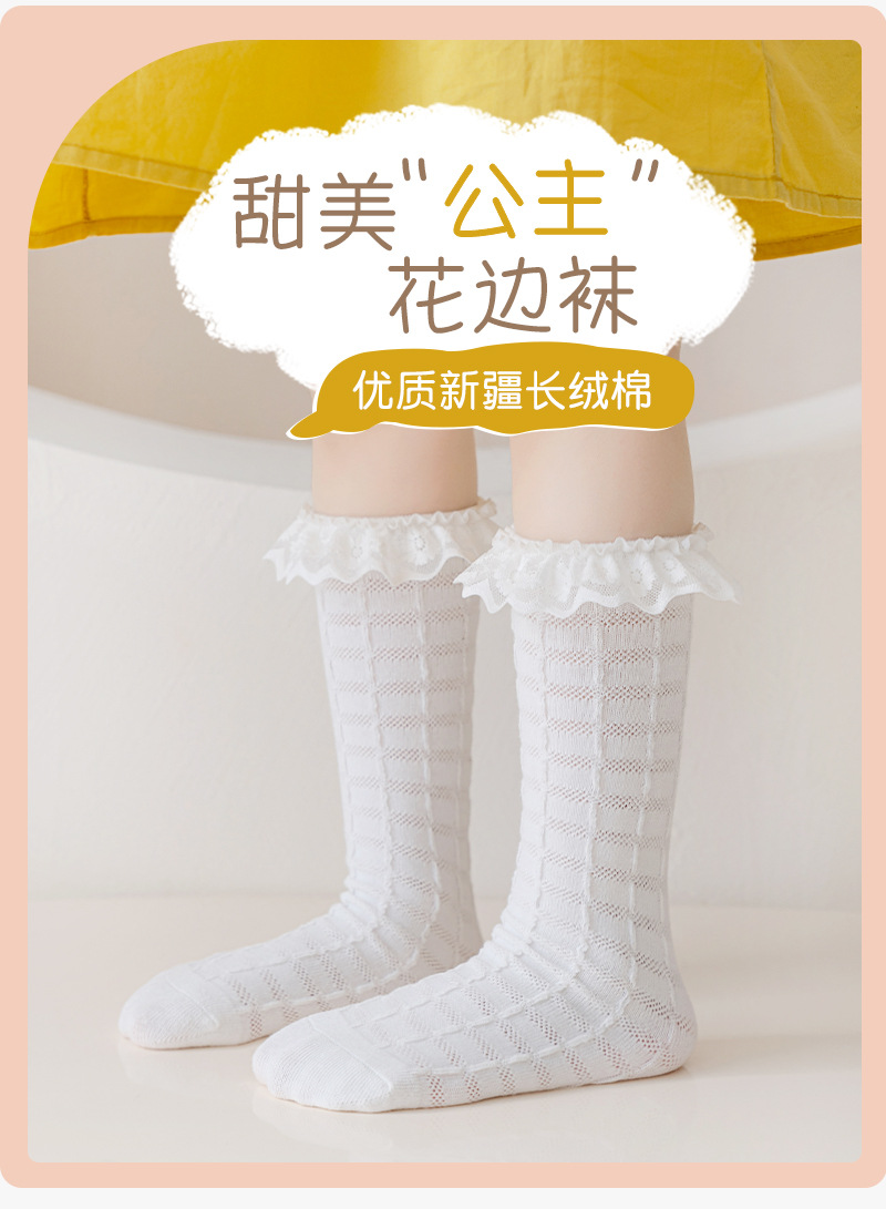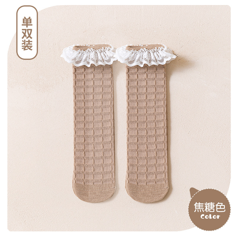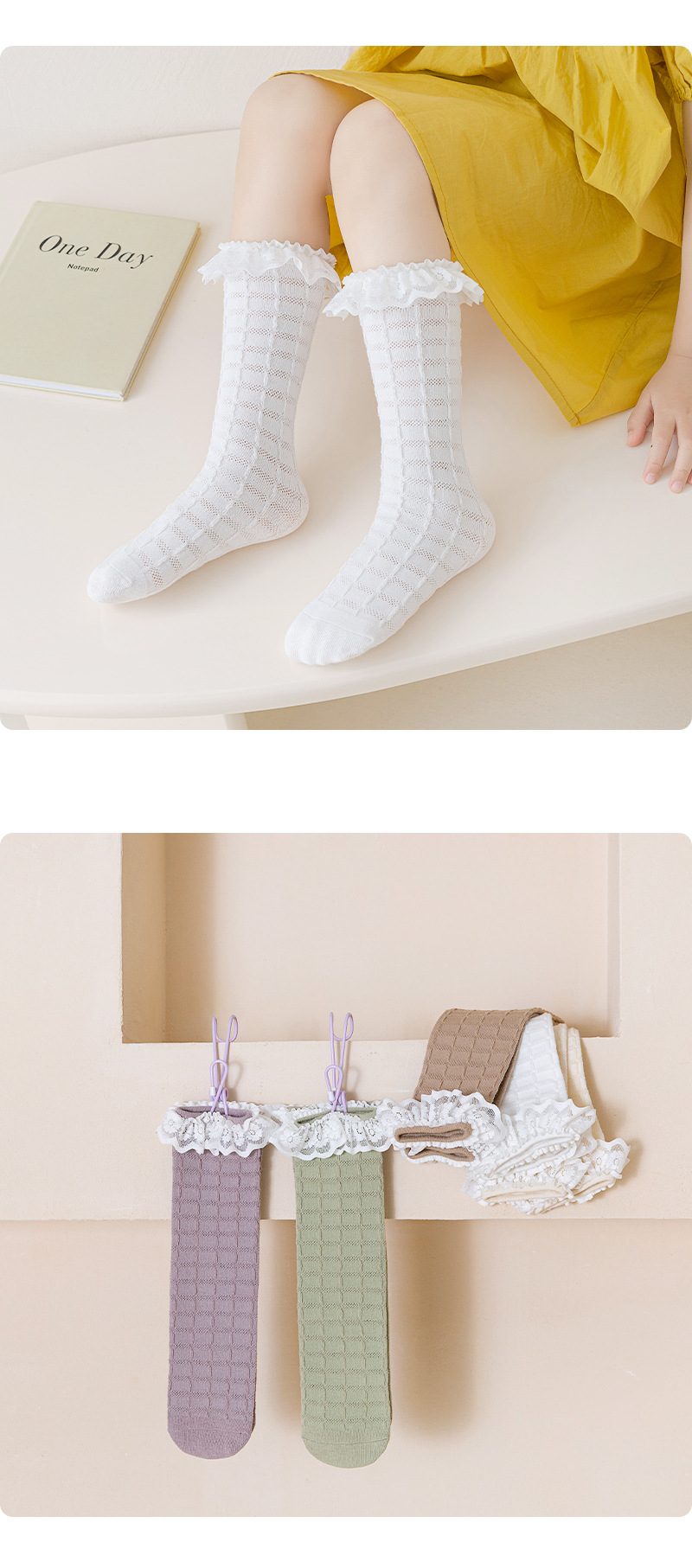 어린이 와플 레이스 양말 봄과 여름 2023 로리타 패턴 공주 단색 여아 송아지 양말 스택 양말