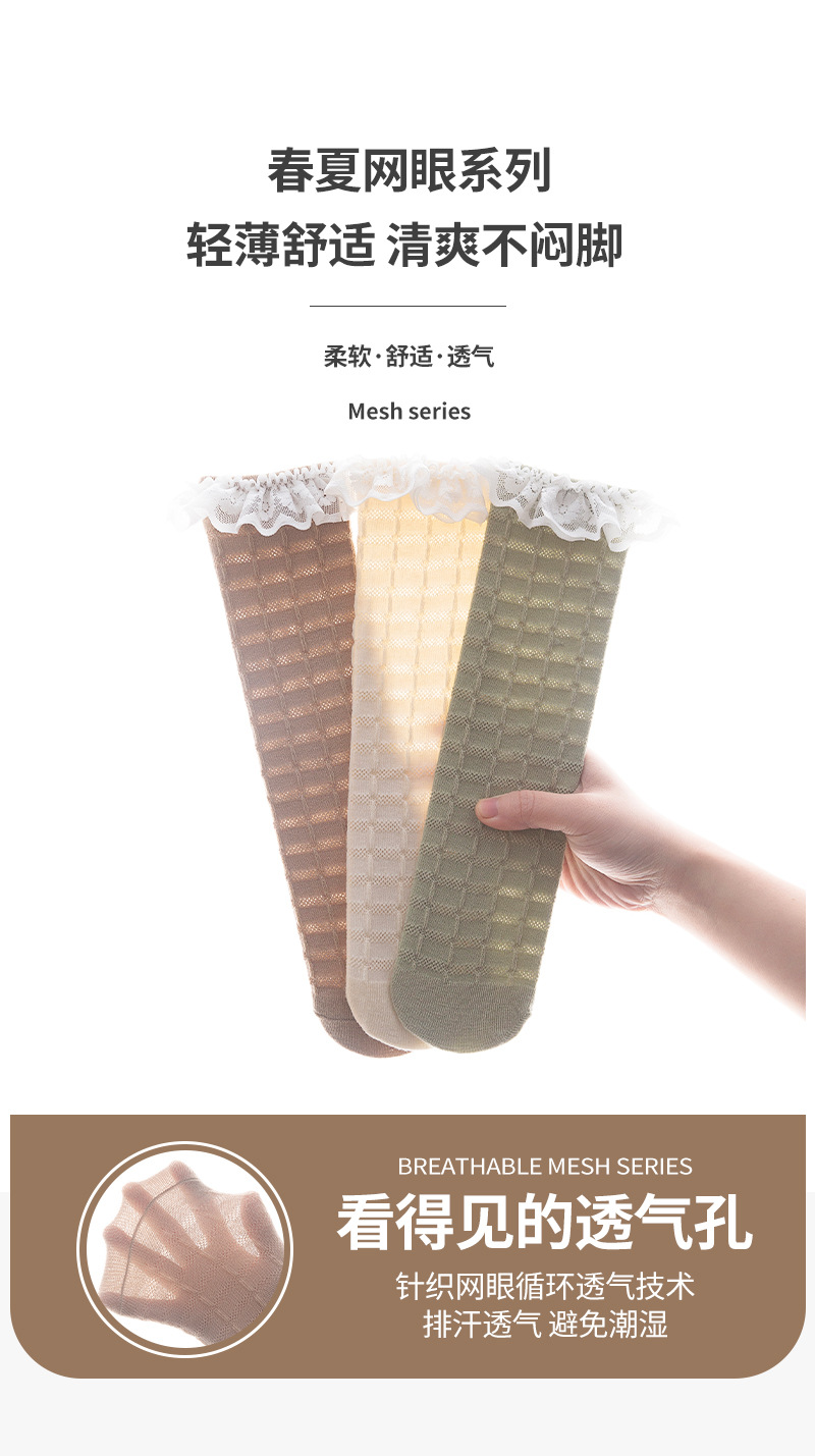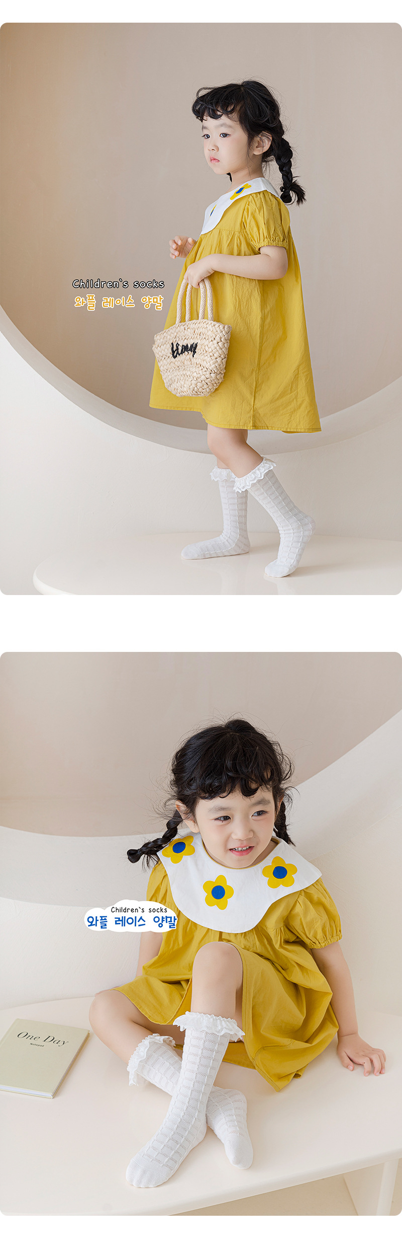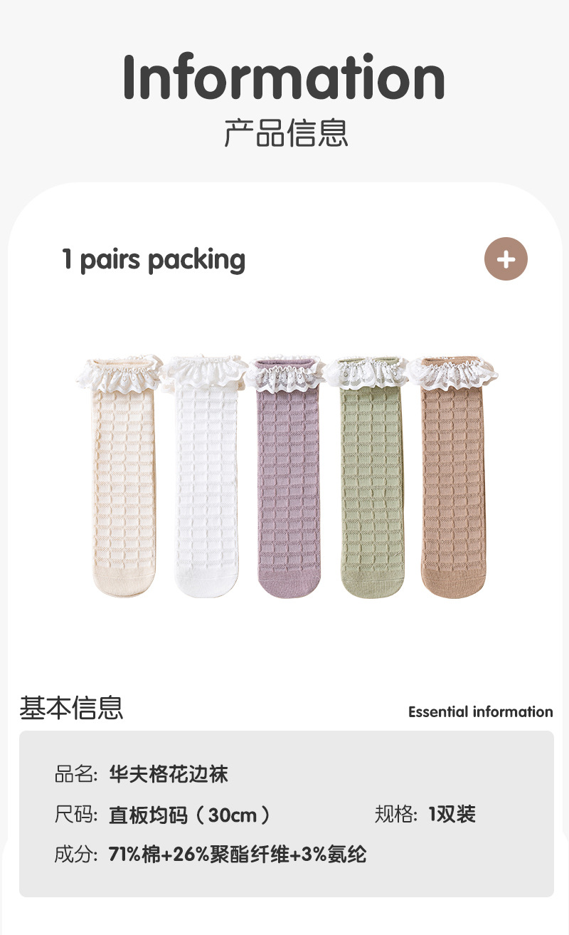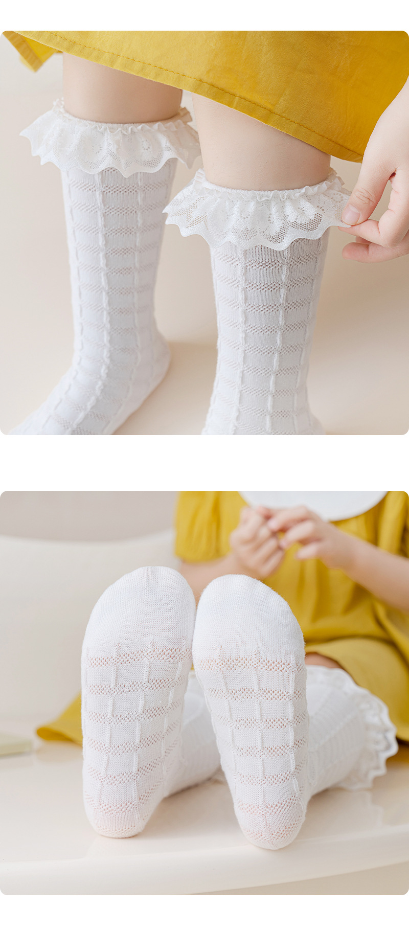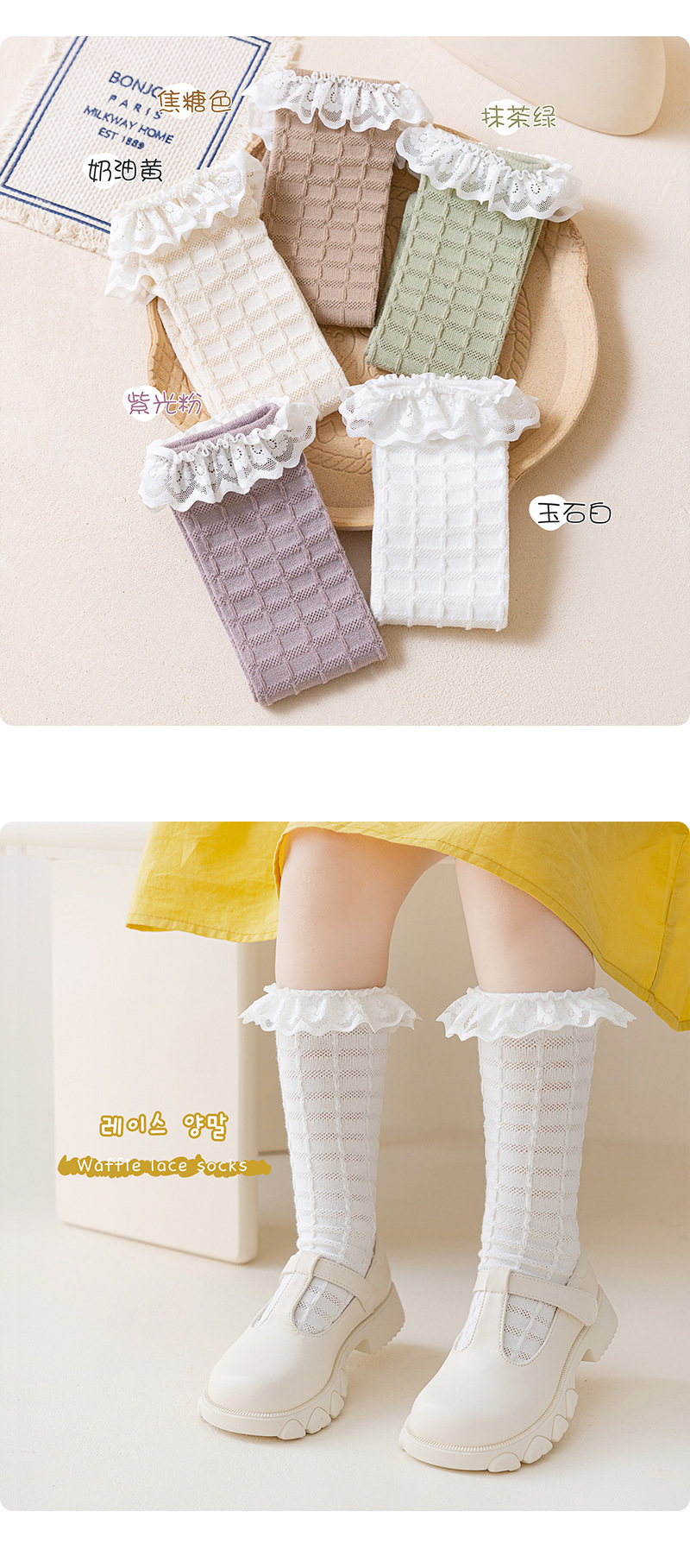 어린이 와플 레이스 양말 봄과 여름 2023 로리타 패턴 공주 단색 여아 송아지 양말 스택 양말스토어 가기