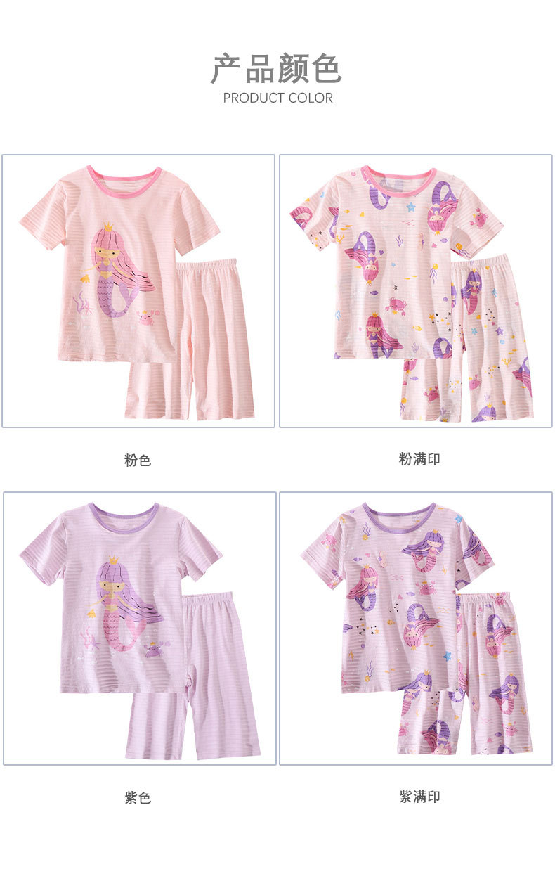 어린이 반팔 세트 만화 여아 에어컨 의류 가정복 세트 새로운 아기 반팔 반바지 투피스 세트스토어 가기