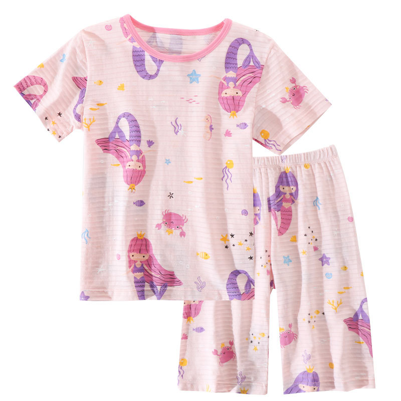 어린이 반팔 세트 만화 여아 에어컨 의류 가정복 세트 새로운 아기 반팔 반바지 투피스 세트