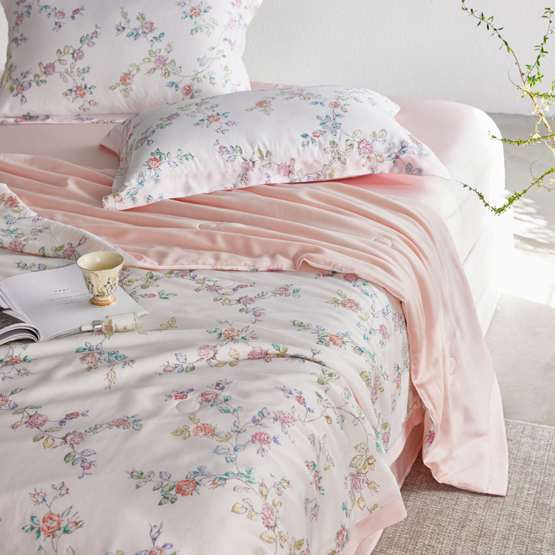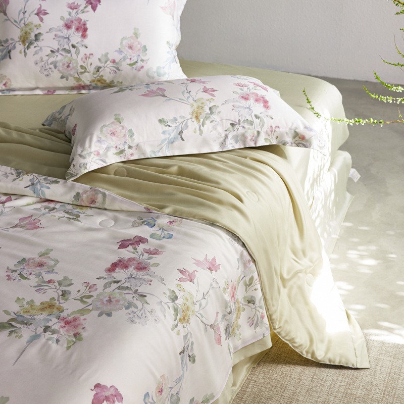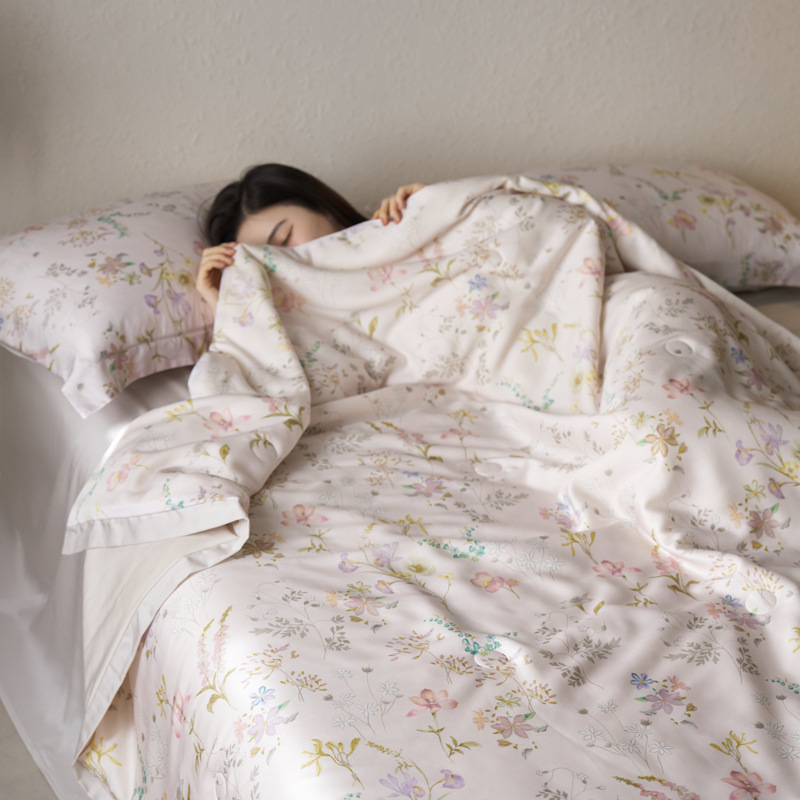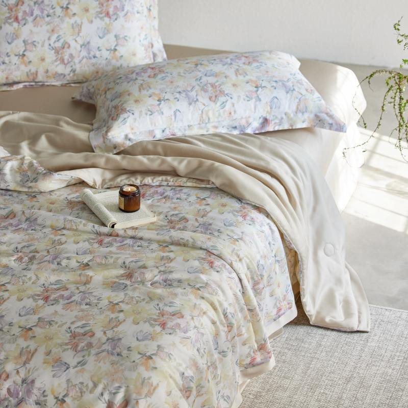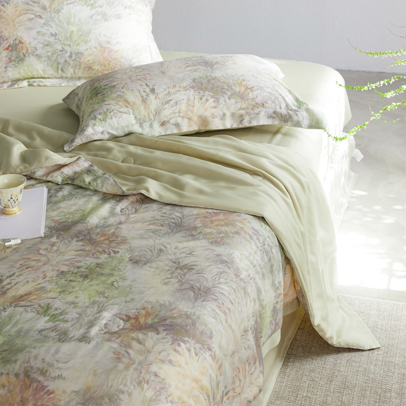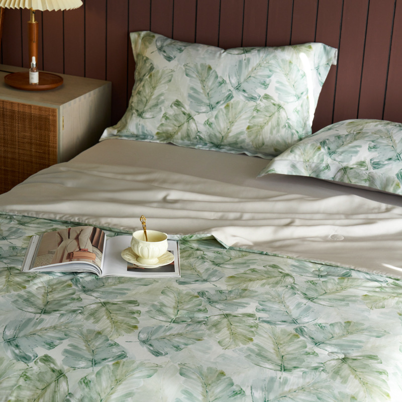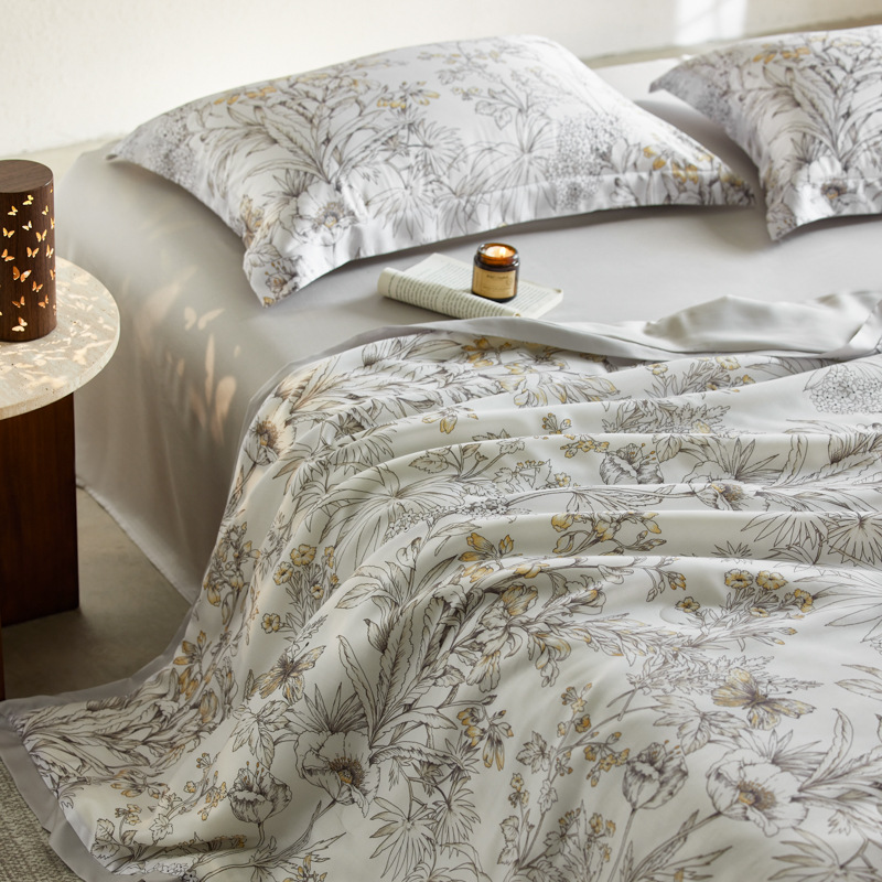 가벼운 럭셔리 Lyocell Tencel 여름 퀼터 4 조각 세트 여름 아이스 실크 콩 섬유 여름 쿨 퀼터 부드러운 시원한 에어컨 퀼터스토어 가기