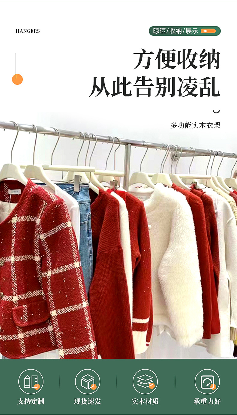 도매 우유 흰색 단단한 나무 걸이 클립 여성 의류 매장 의류 걸려있는 두꺼운 어린이 의류 매장 나무 의류 지원 바지 랙스토어 가기