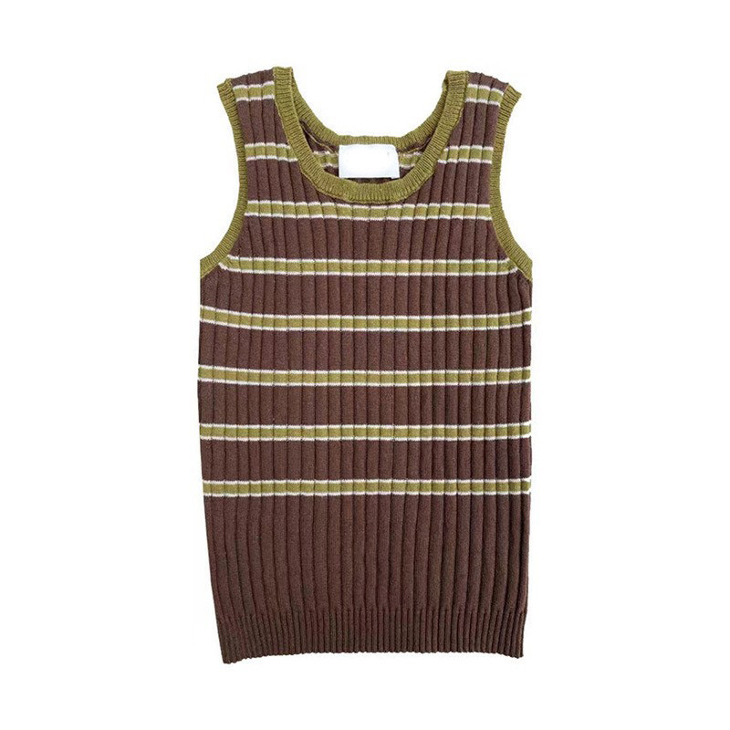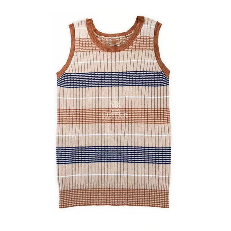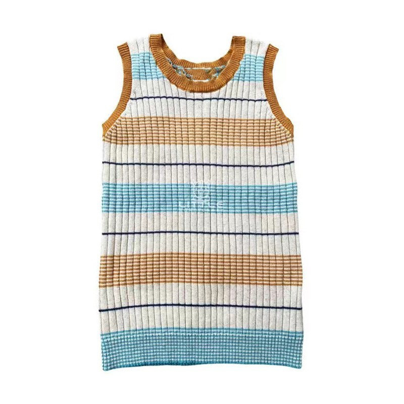 여름 신제품 어린이 줄무늬 민소매 조끼 남성과 여성 베이비 순수 코튼 스웨터 라운드 넥 탑 2025