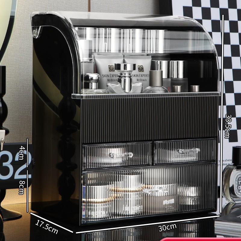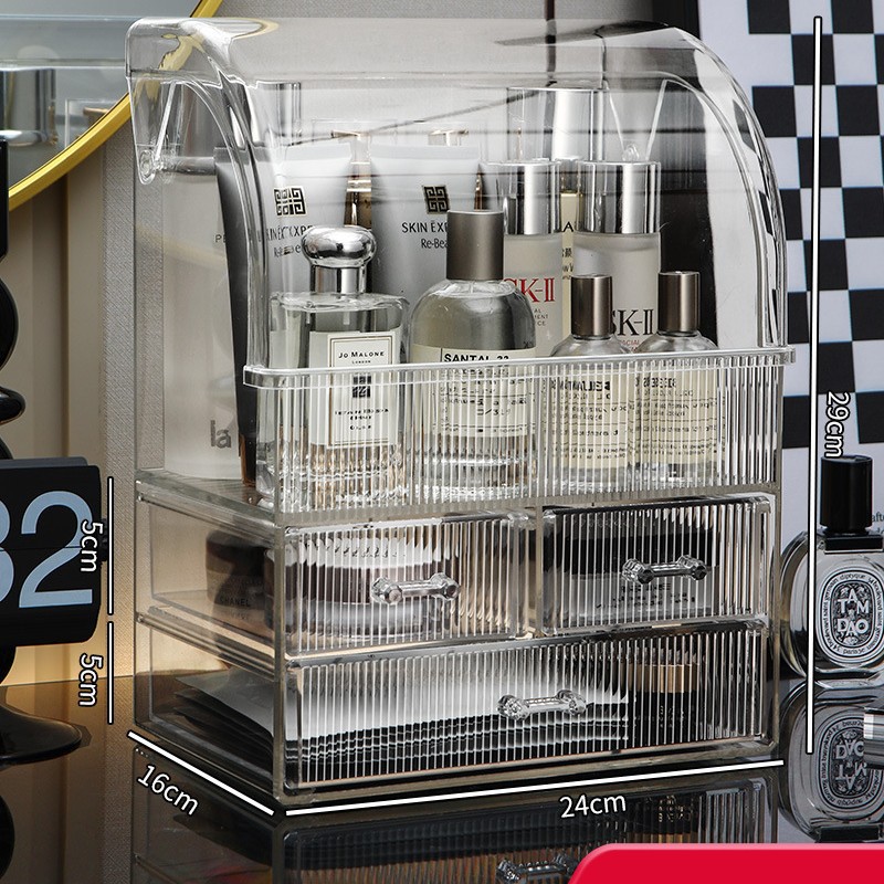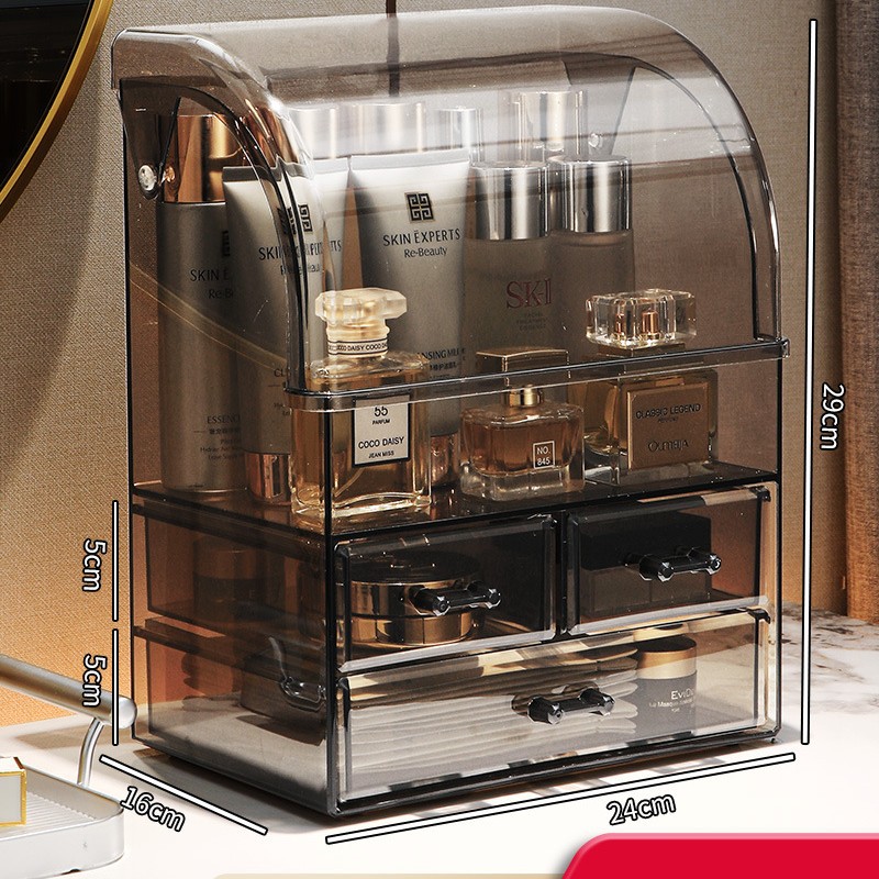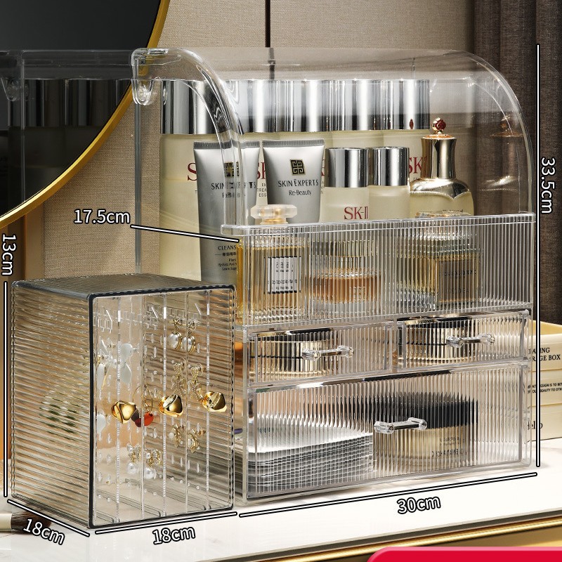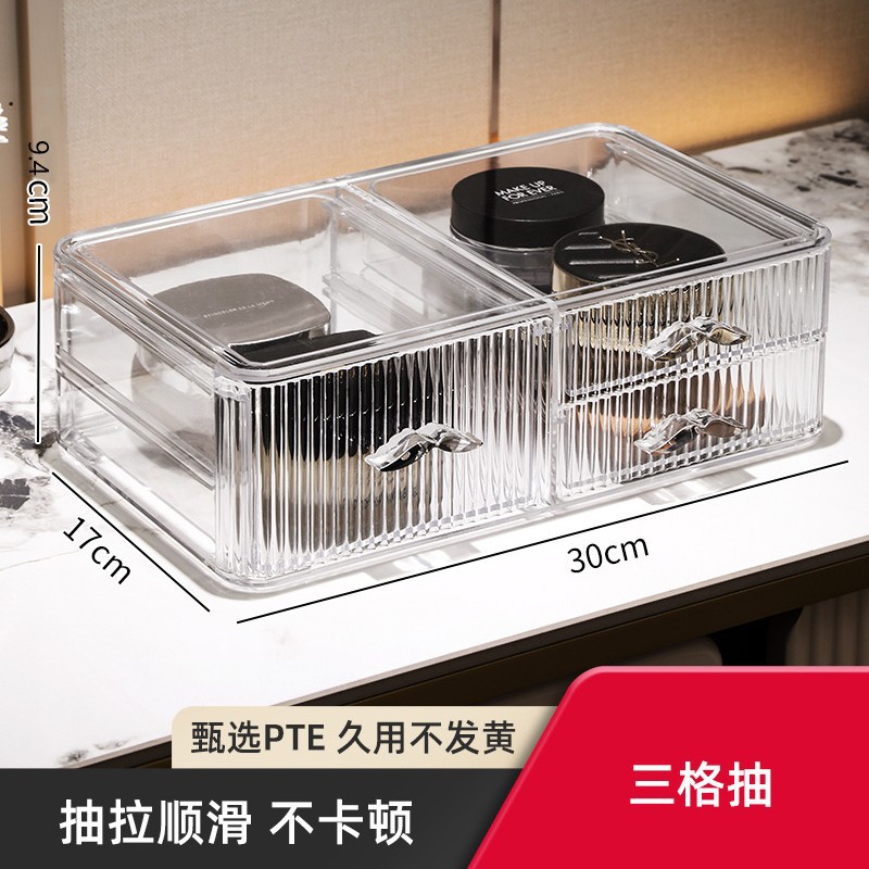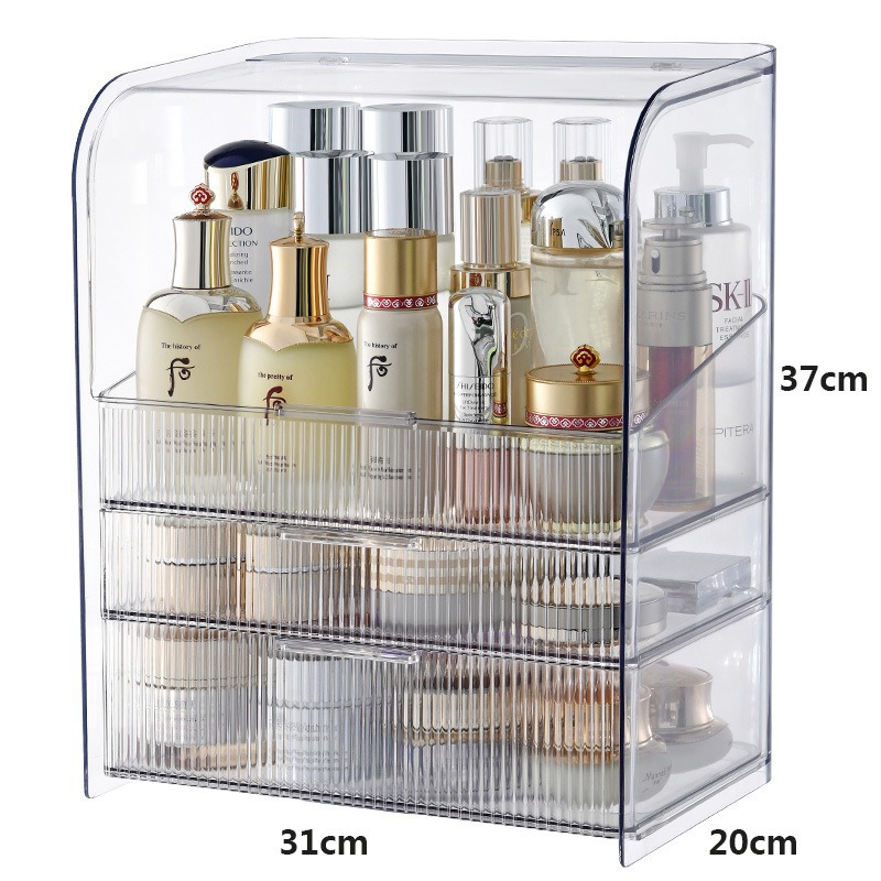 • [방진 3 중 세트] 화장품 상자 + 더블 서랍 + 트레이 상단
