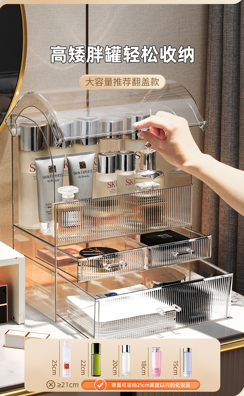 화장품 보관함 데스크탑 화장대 방진 대용량 가정용 투명 스킨 케어 제품 립스틱 마스크 보관 랙스토어 가기