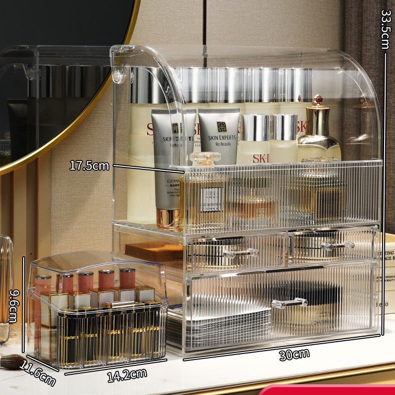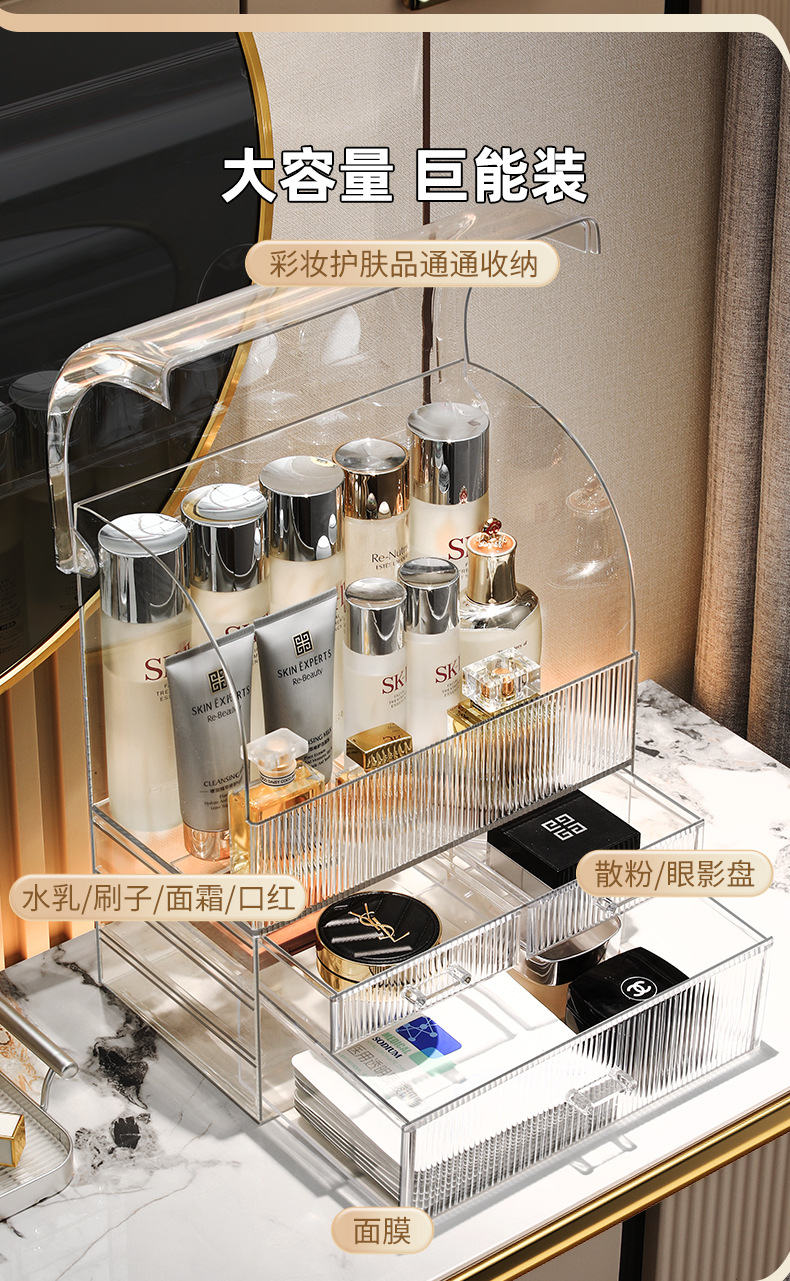 화장품 보관함 데스크탑 화장대 방진 대용량 가정용 투명 스킨 케어 제품 립스틱 마스크 보관 랙