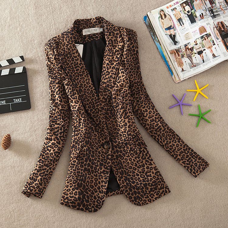 2025 봄 신상 레오파드 프린트 여성용 블레이저 재킷 한국 스타일 중간 길이 패션 슬림핏 원버튼 긴팔 정장스토어 가기