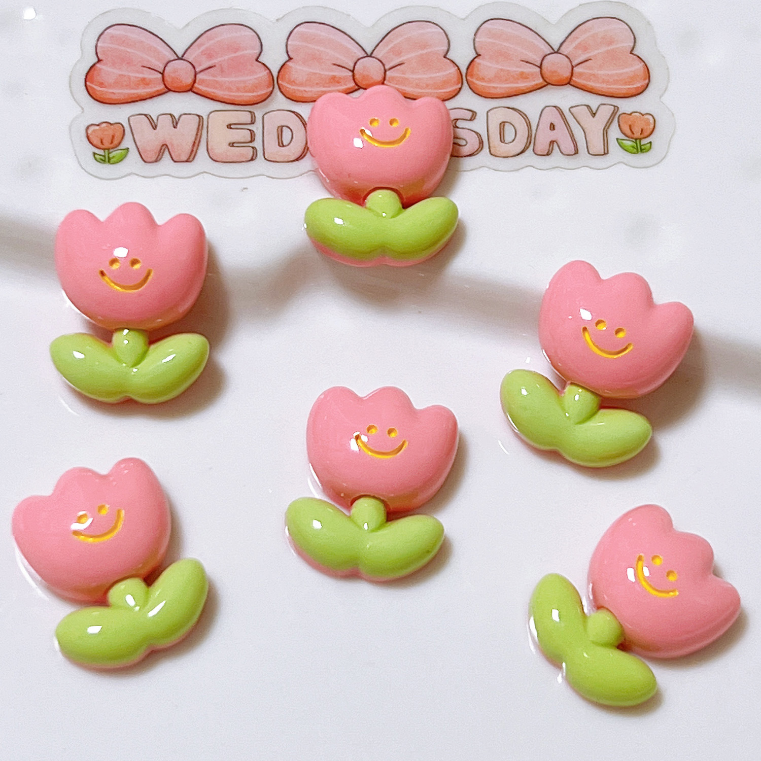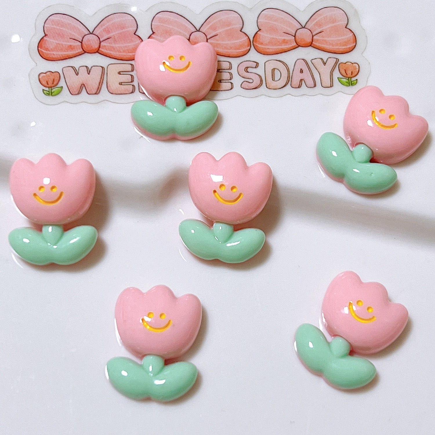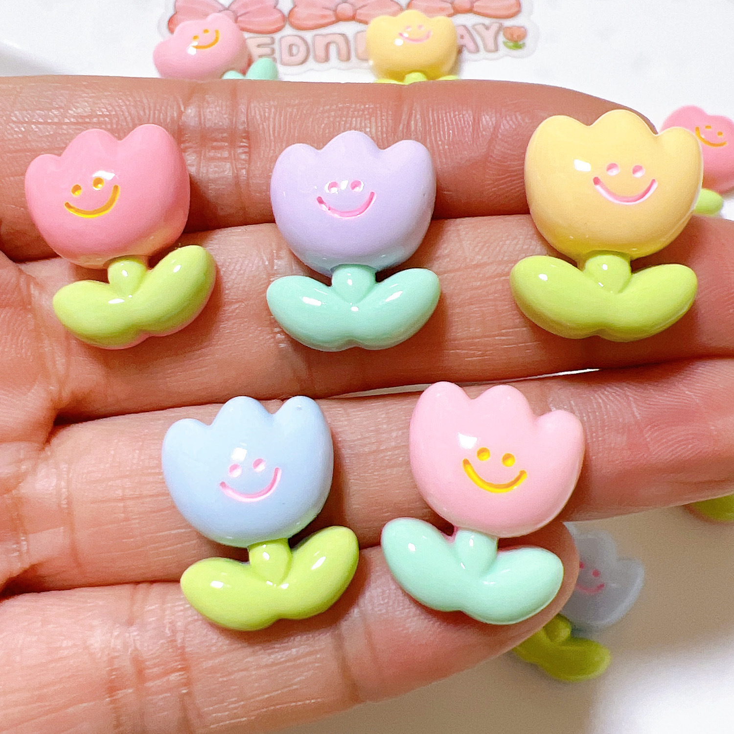 DIY 수지 액세서리 도매 헤어 액세서리 크림 젤 수제 소재 밝은 얼굴 젤리 컬러 웃는 얼굴 튤립