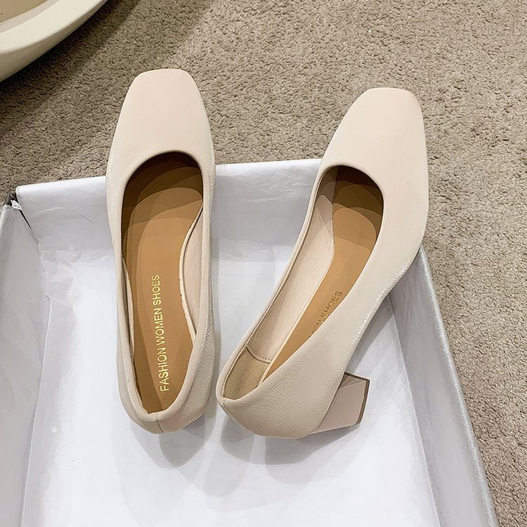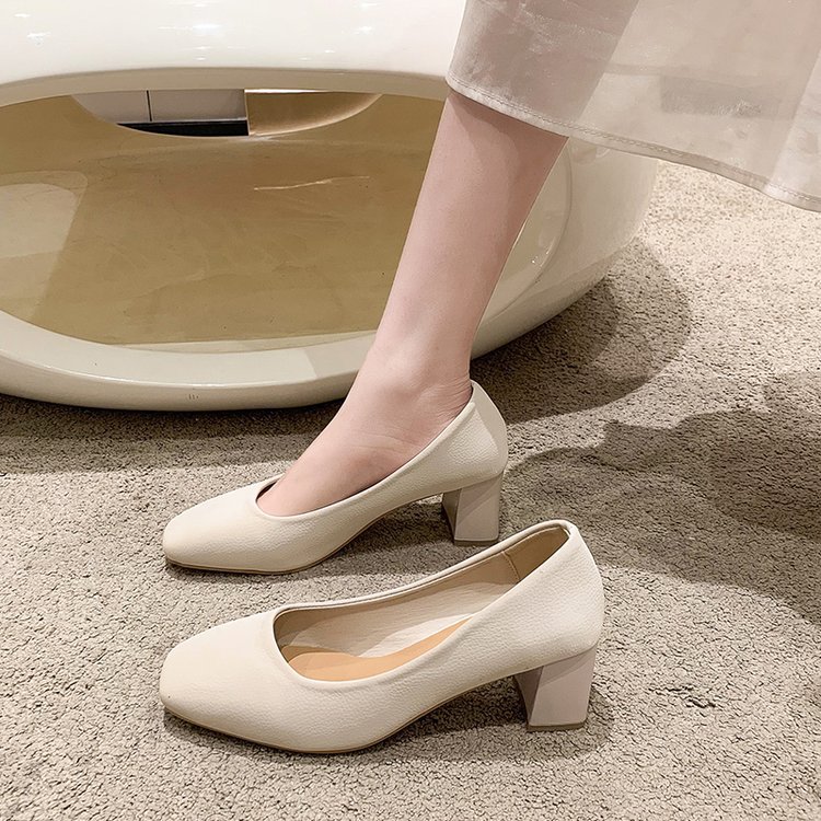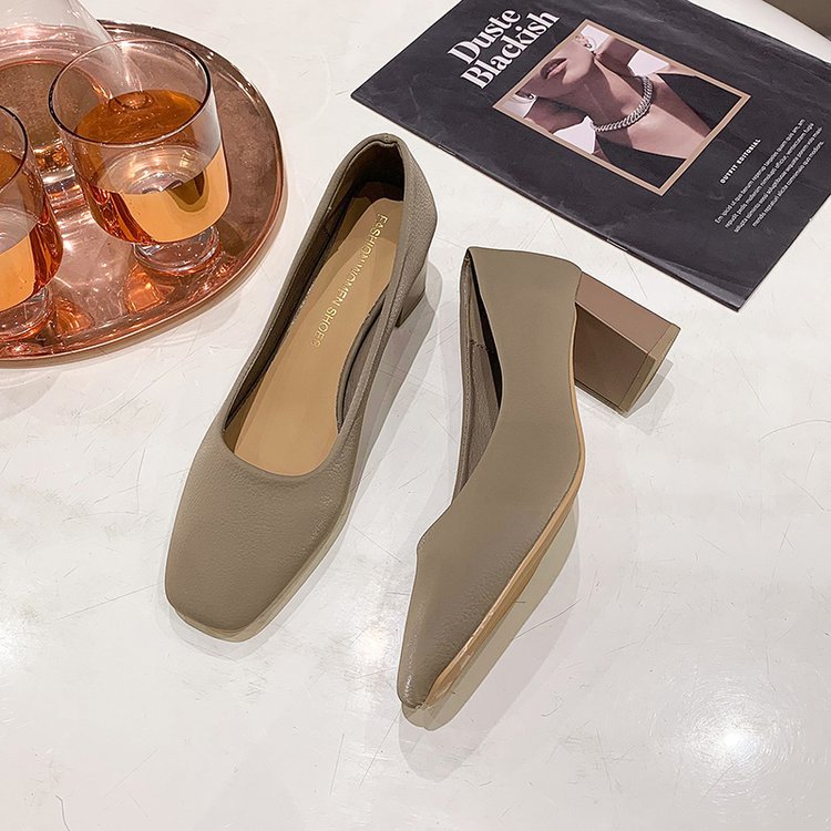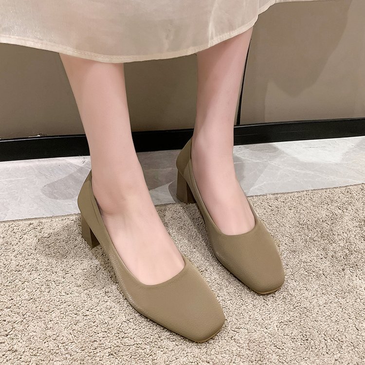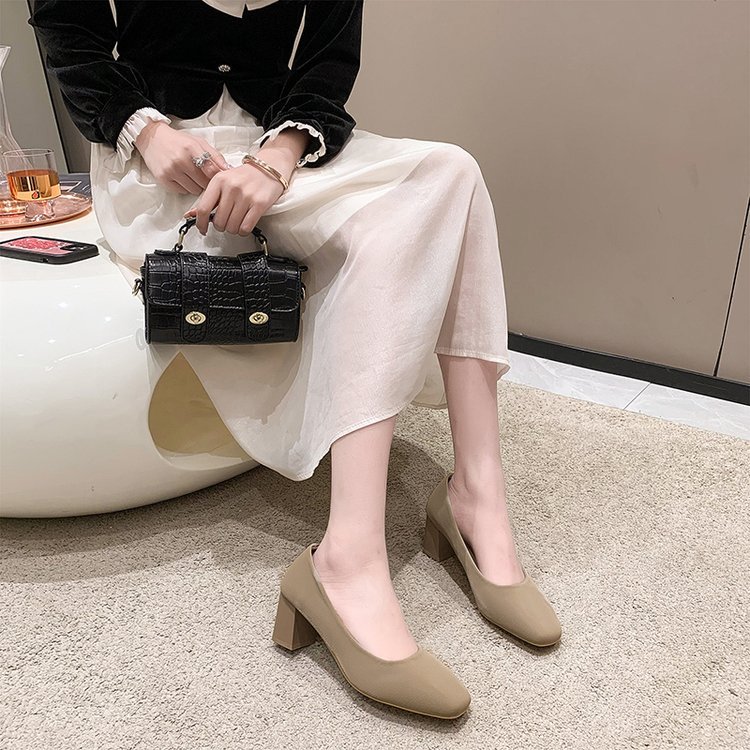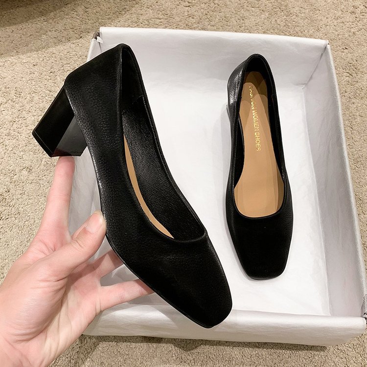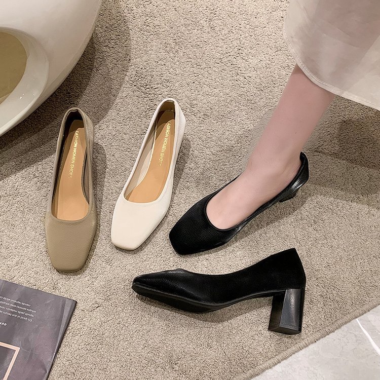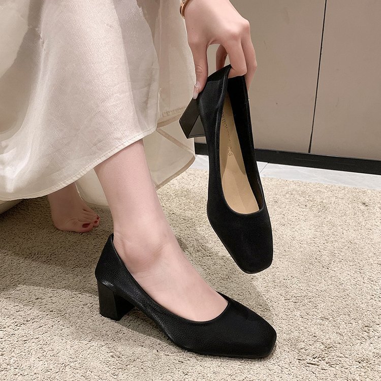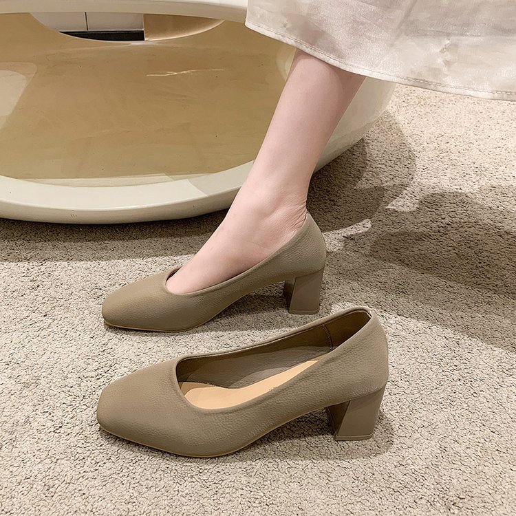 2023 봄 새 여성 신발 로우 컷 두꺼운 뒤꿈치 스퀘어 발가락 싱글 신발 패션 하이힐 도매스토어 가기