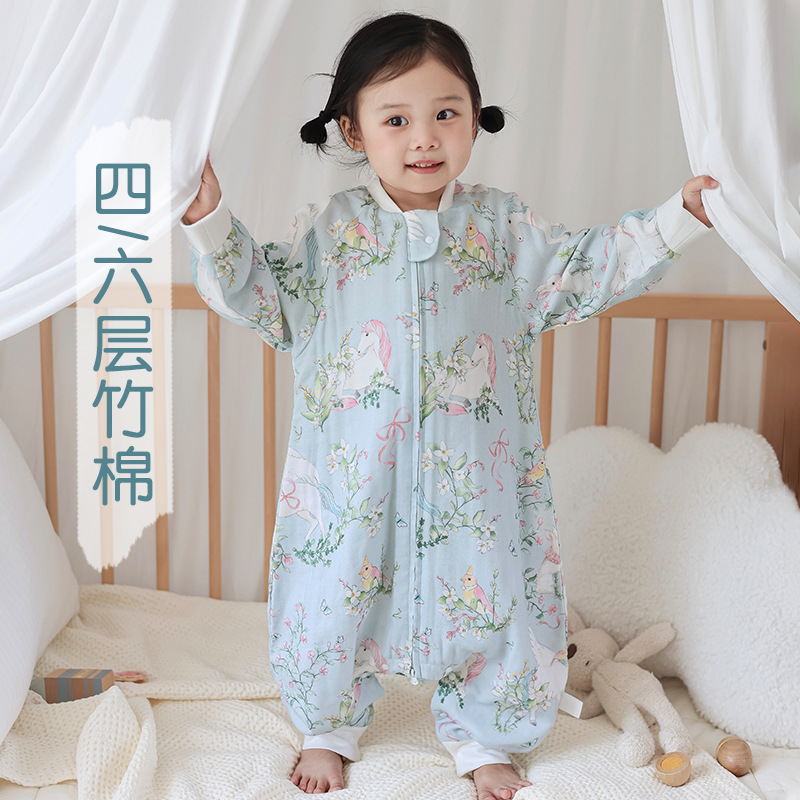 베이이 대나무 면 거즈 수면조끼 아기용 A급 가을 겨울 누빔 아기 온도조절 일체형 잠옷 어린이 발차기 방지 이불