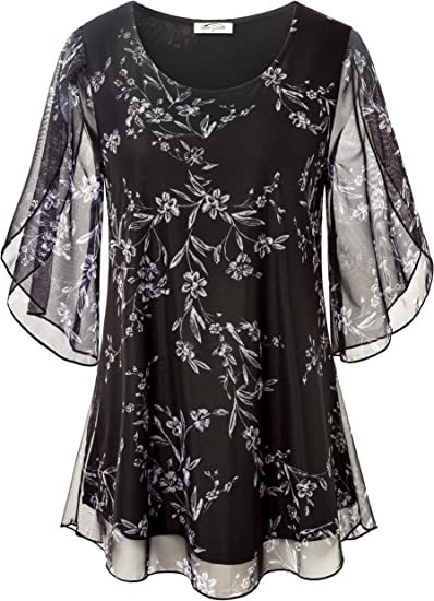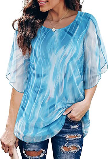 2024 아마존 인기 반팔 여성 주름 세븐스리브 쉬폰 루즈핏 우아한 탑 신축성 있는 셔츠 여름스토어 가기