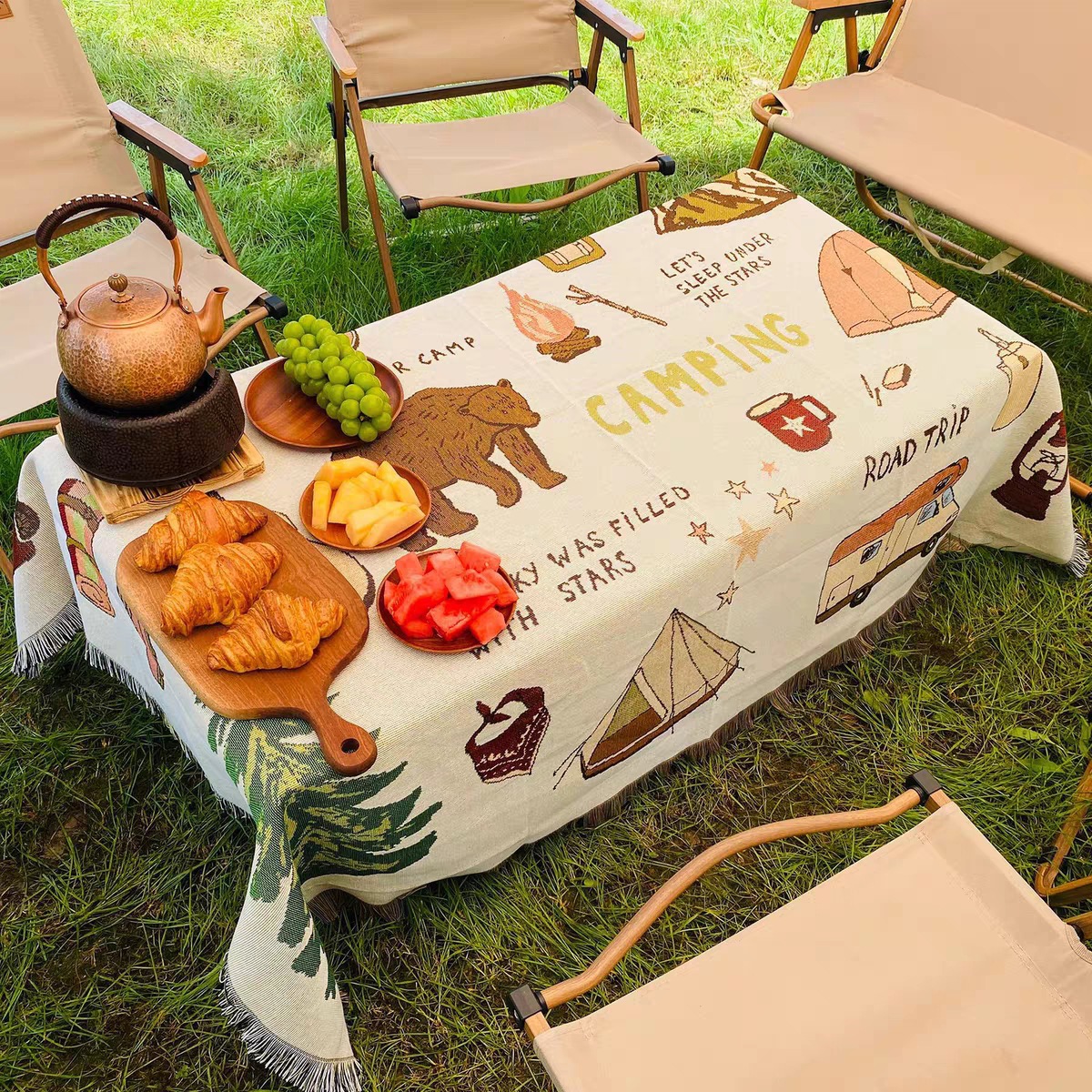 Ins Boho 스타일 두꺼운 피크닉 매트 캠핑 테이블 천 야외 잔디 방습 매트 텐트 장비 담요