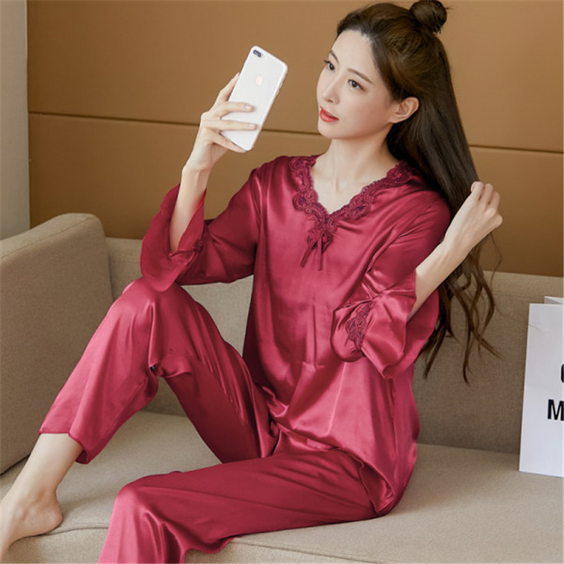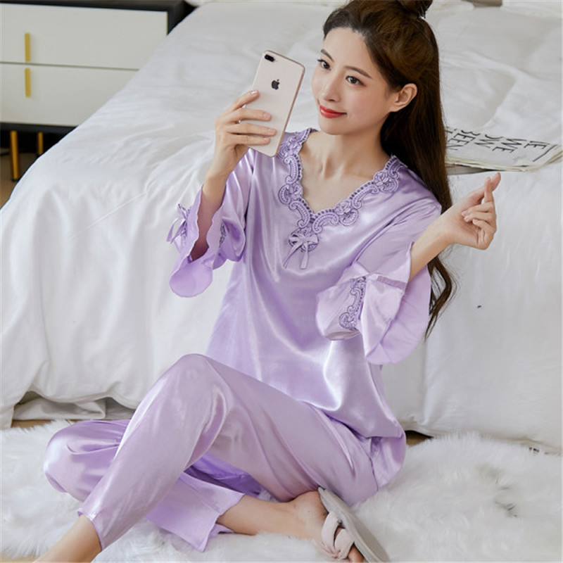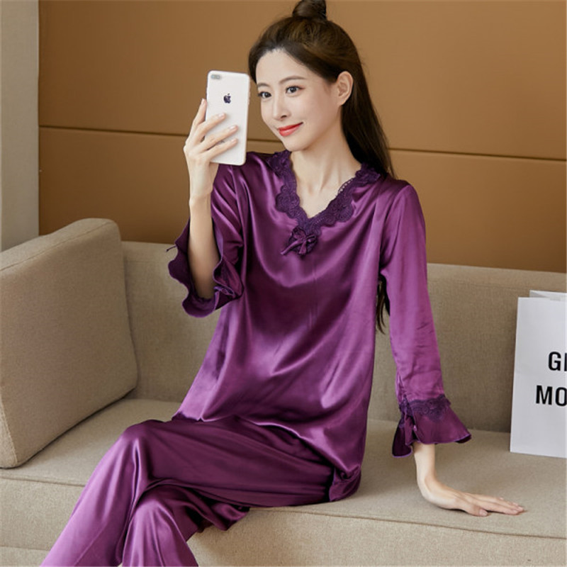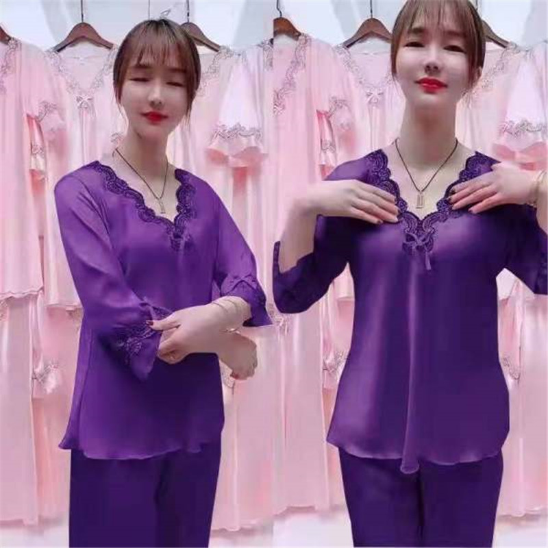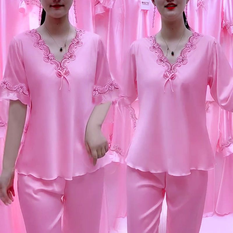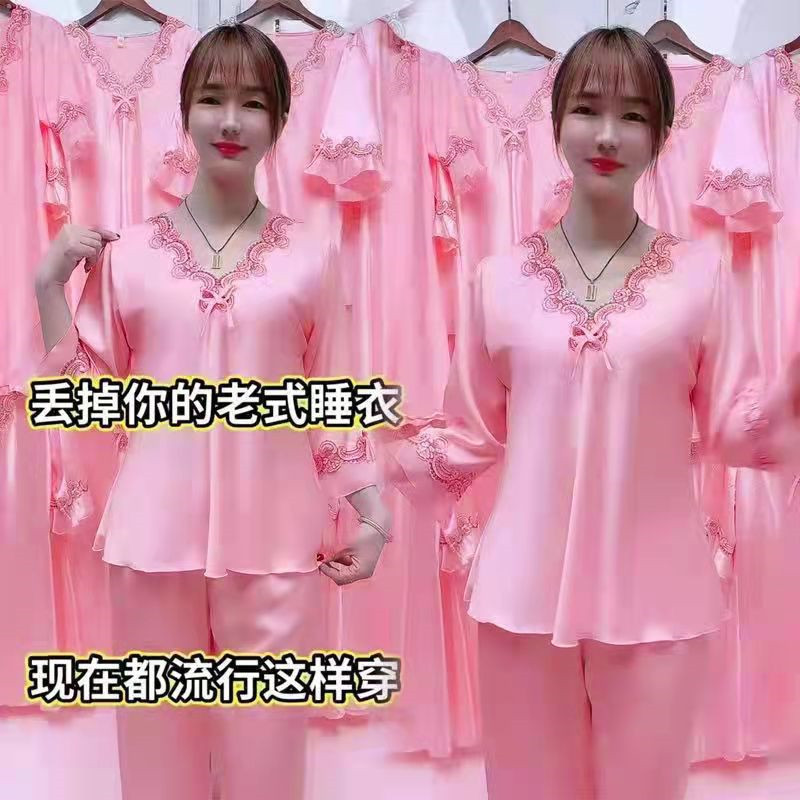 2023 새로운 아이스 실크 잠옷 여자의 여름 한국식 모조 실크 플러스 사이즈 잠옷 여자의 봄과 가을 가정 의류스토어 가기