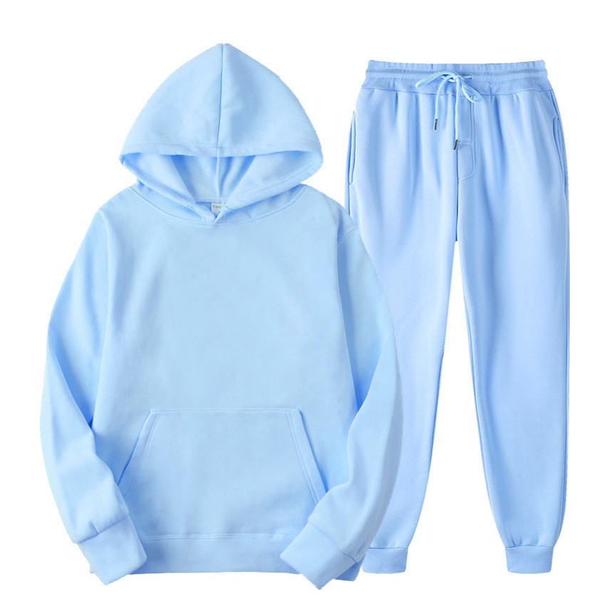 2023 새로운 단색 크로스 보더 풀오버 스웨터 스포츠 세트 스웨터 세트 패션 양털 남성과 여성 까마귀