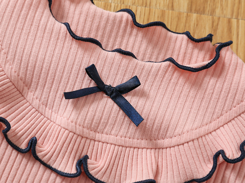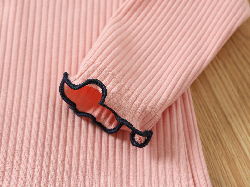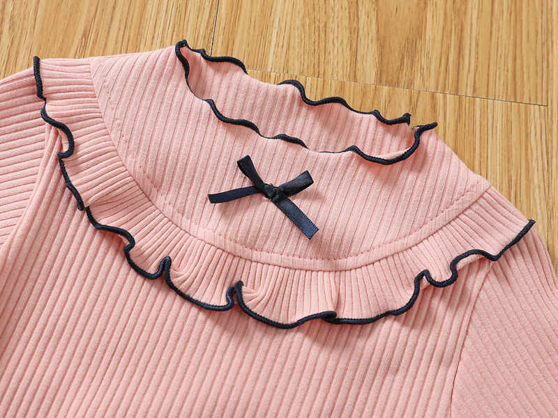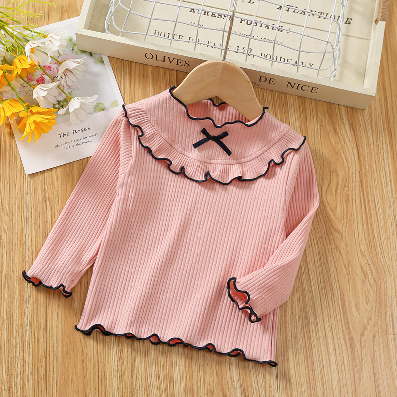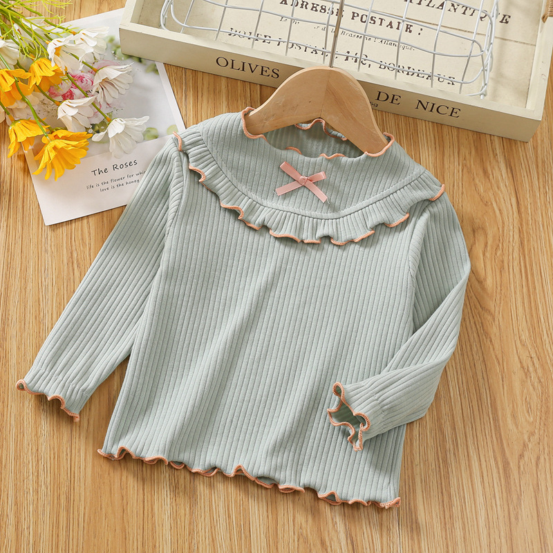 봄과 가을 베이비 베이스 셔츠 한국 여아 로터스 칼라 긴 소매 면 티셔츠 새로운 어린이 단색 면 탑