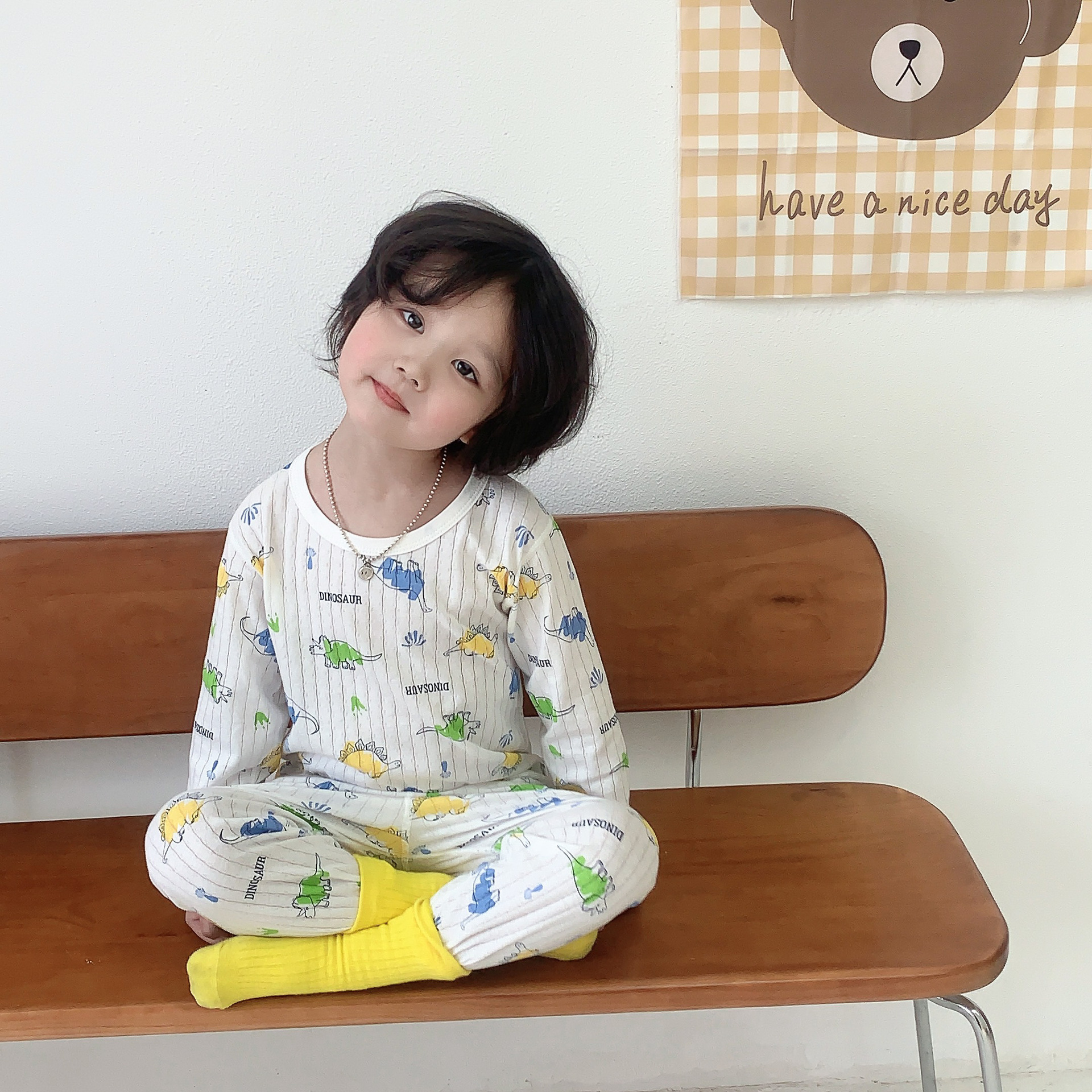 봄과 여름 세트 어린이 긴팔 에어컨 옷 아기 면 가정 옷 소년과 소녀 큰 어린이 만화 잠옷 여름스토어 가기