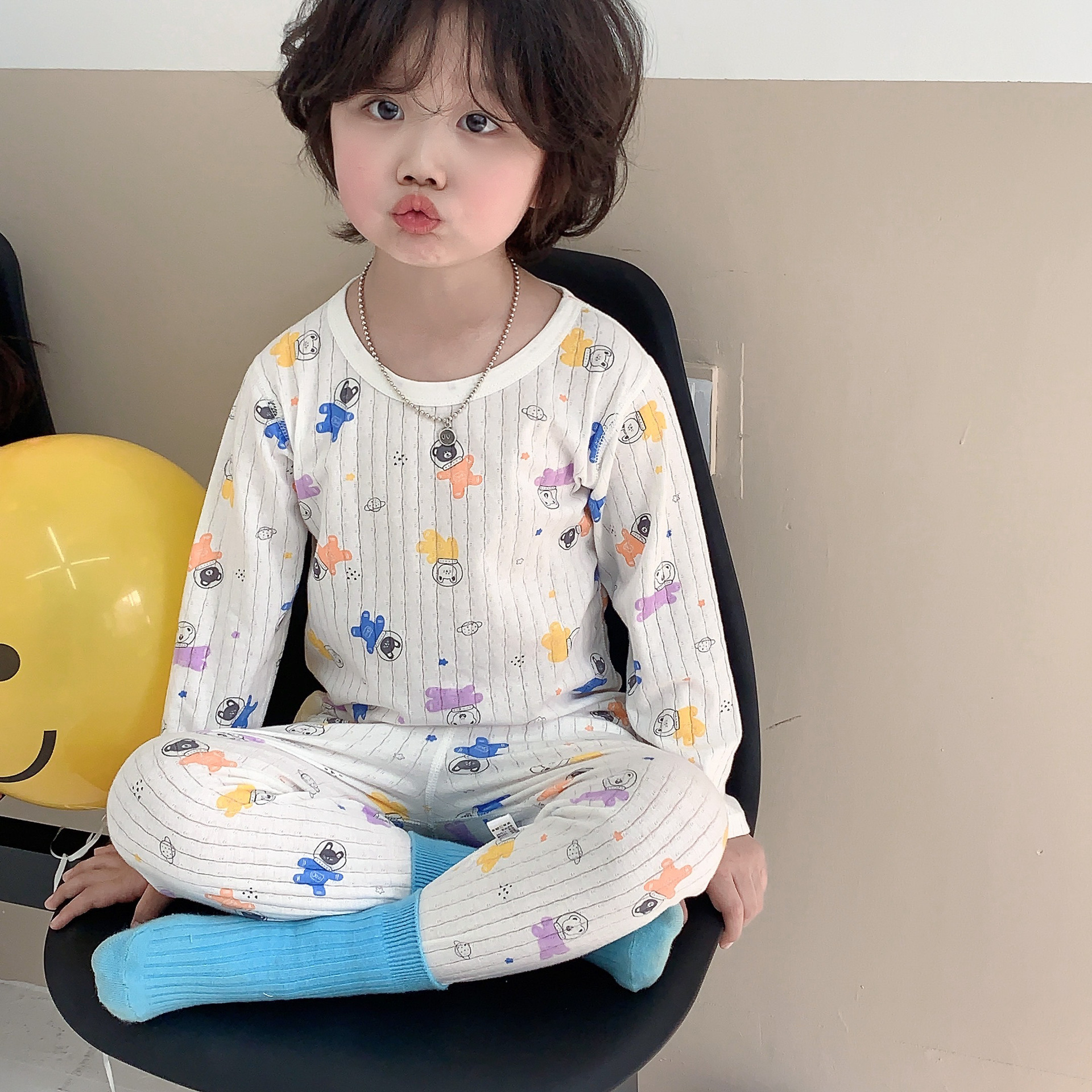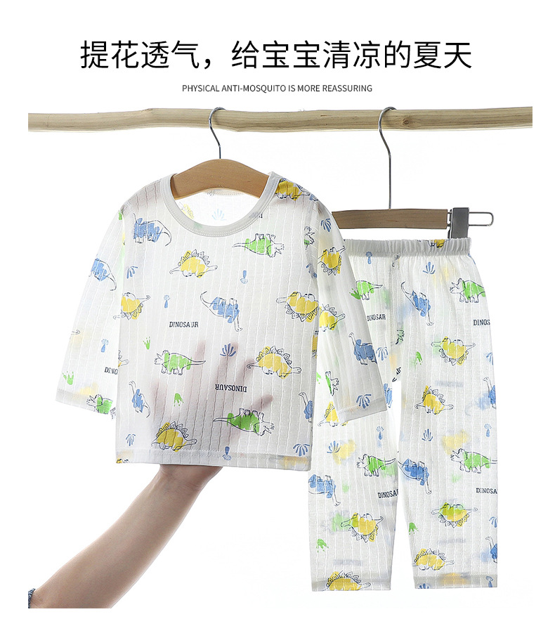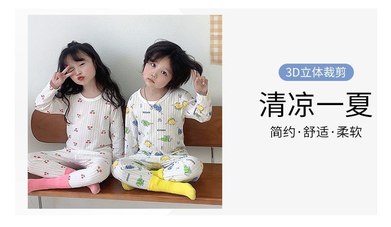 봄과 여름 세트 어린이 긴팔 에어컨 옷 아기 면 가정 옷 소년과 소녀 큰 어린이 만화 잠옷 여름