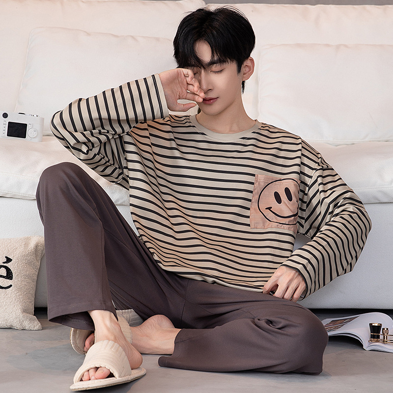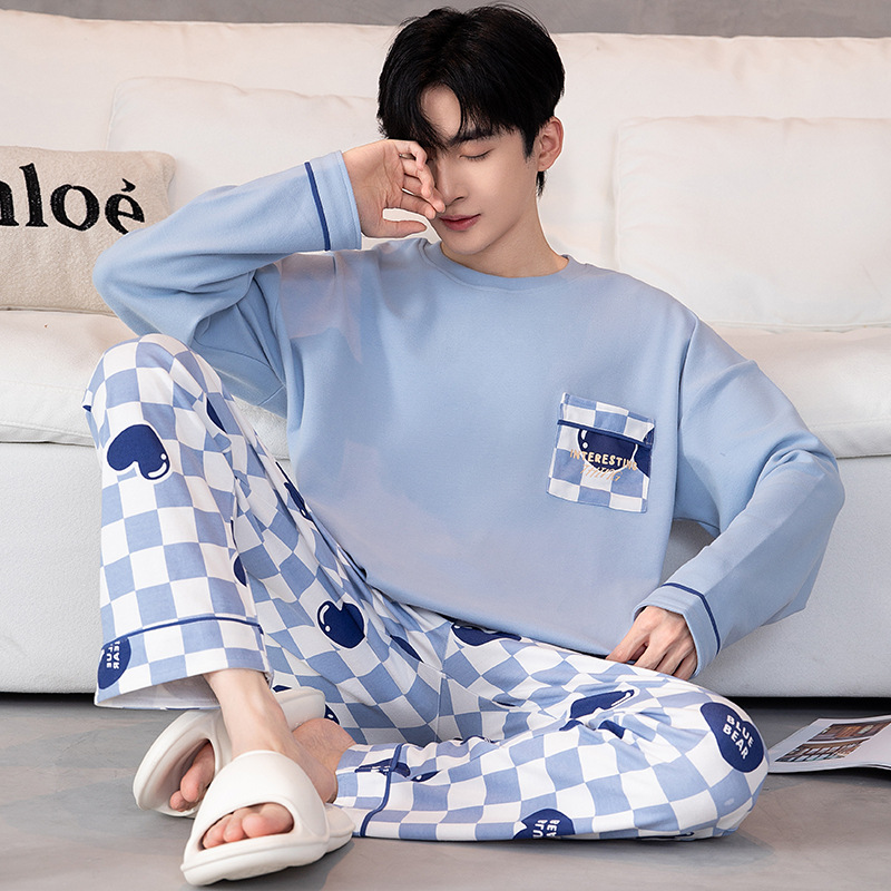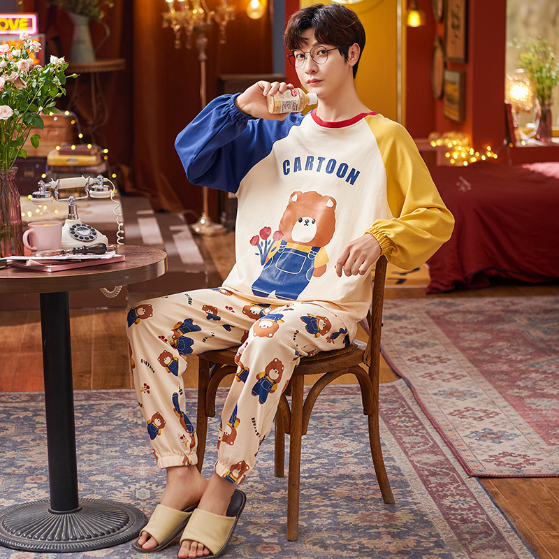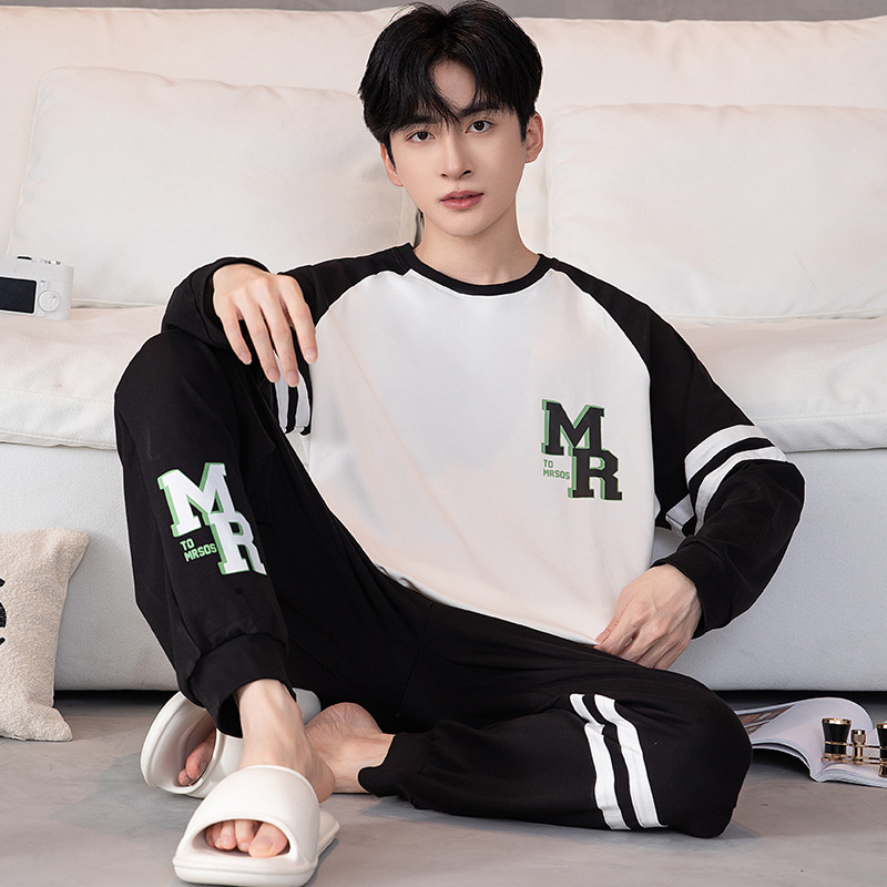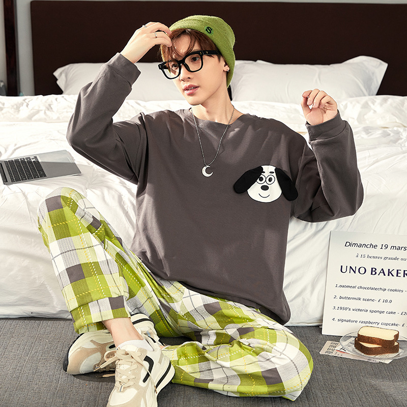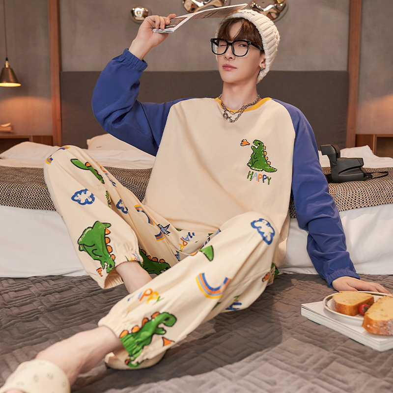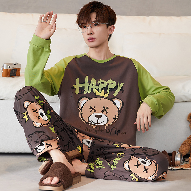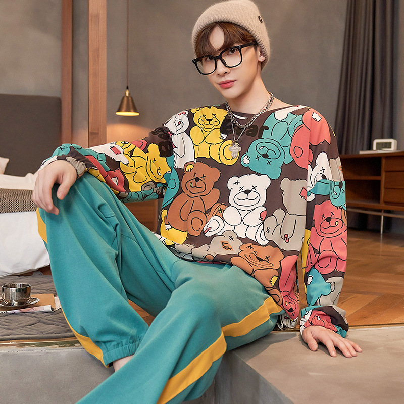 새로운 스타일 순면 남자의 가정 옷 캐주얼 유행 브랜드 라운드 넥 만화 긴 소매 세트 어린 소년 잠옷스토어 가기
