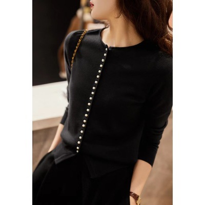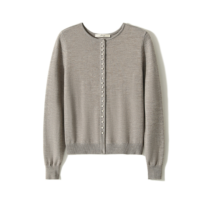 사랑 파리 _ 우아한 진주 버클 독일 양쯔 원사 울 니트 가디건 여성의 이른 봄 대외 무역 간단한 스웨터