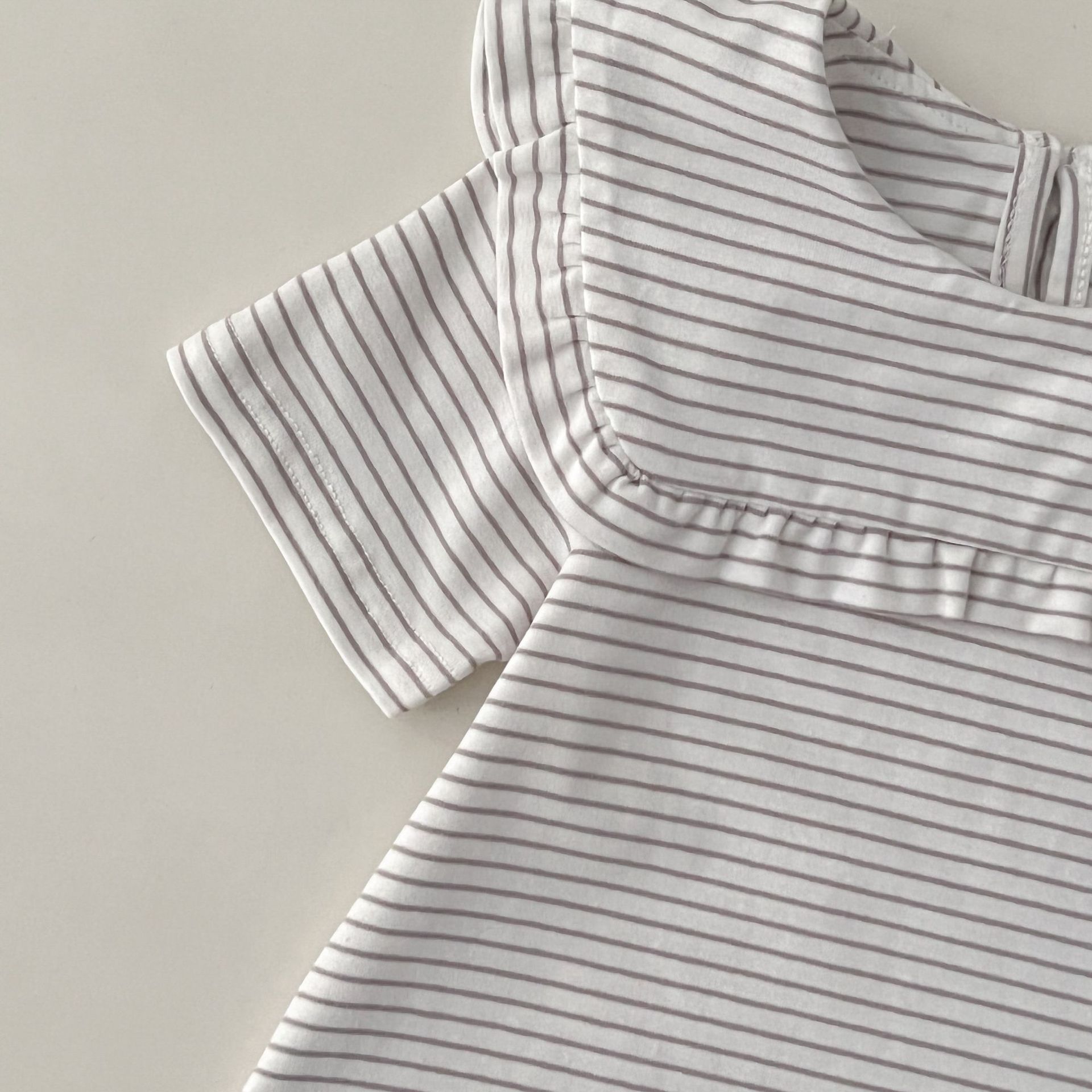 여자 한국 스타일 최고 봄과 여름 2023 새로운 줄무늬 옷깃 티셔츠 세련된 반팔 인형 칼라 아동복스토어 가기