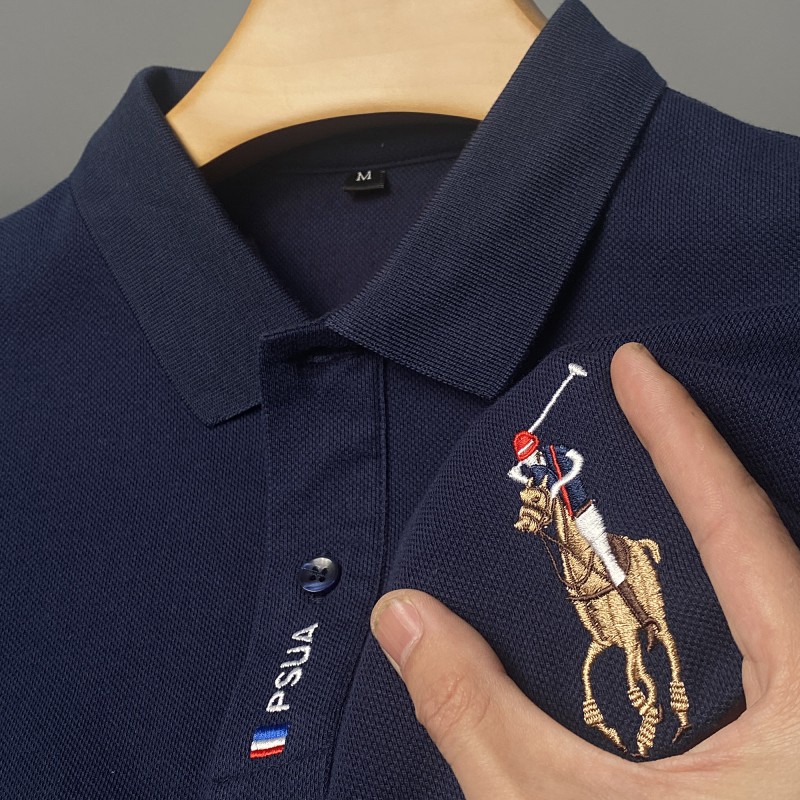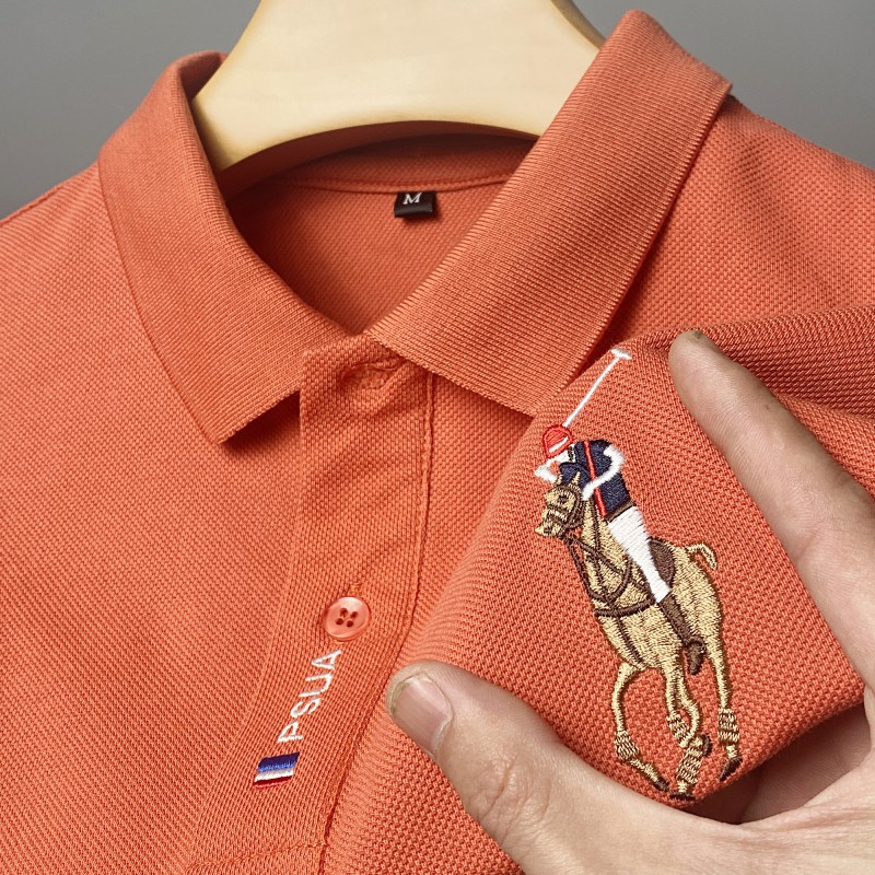 비즈니스 외국 무역 2025 신상 여름 남성 반팔 티셔츠 자수 대형 사이즈 폴로 셔츠 청년 및 중년용 단색 상의스토어 가기