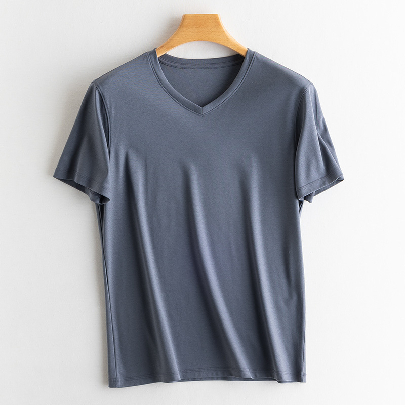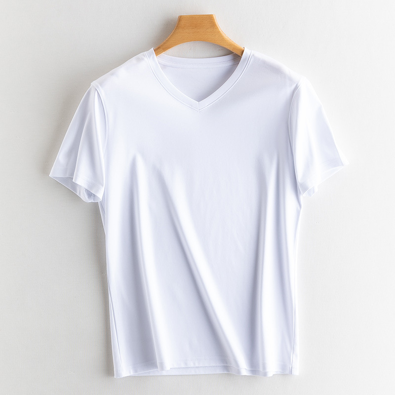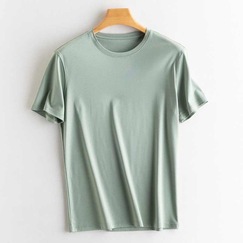 Yuyue 뽕나무 실크 남성 티셔츠 머서라이즈 코튼 탑 데일리 루즈 통근 슬림 기본 티셔츠 남성 반팔
