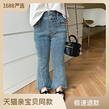 아동복 2023 의 한국어 버전 봄과 가을 새로운 소녀의 플레어 팬츠 여성 아기 유행 분할 슬림 데님 바지의 한국어 버전스토어 가기