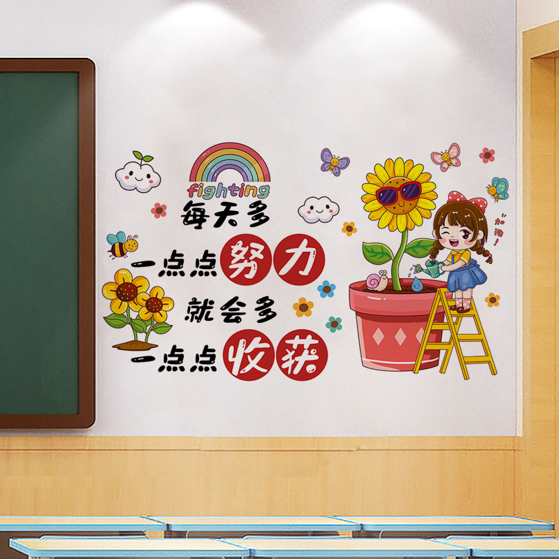 7033 만화 영감 벽 스티커 초등학교 교실 수업 문화 장식 스티커 기숙사 텍스트 슬로건 스티커스토어 가기