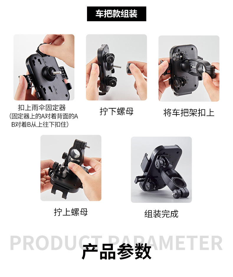 소형 우산으로 전기 오토바이 휴대 전화 홀더 도매 배터리 자전거 테이크 아웃 라이더 카 내비게이션 충격 방지