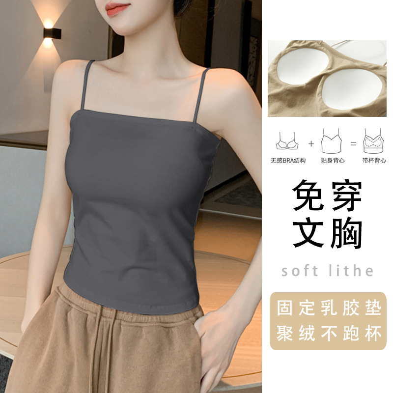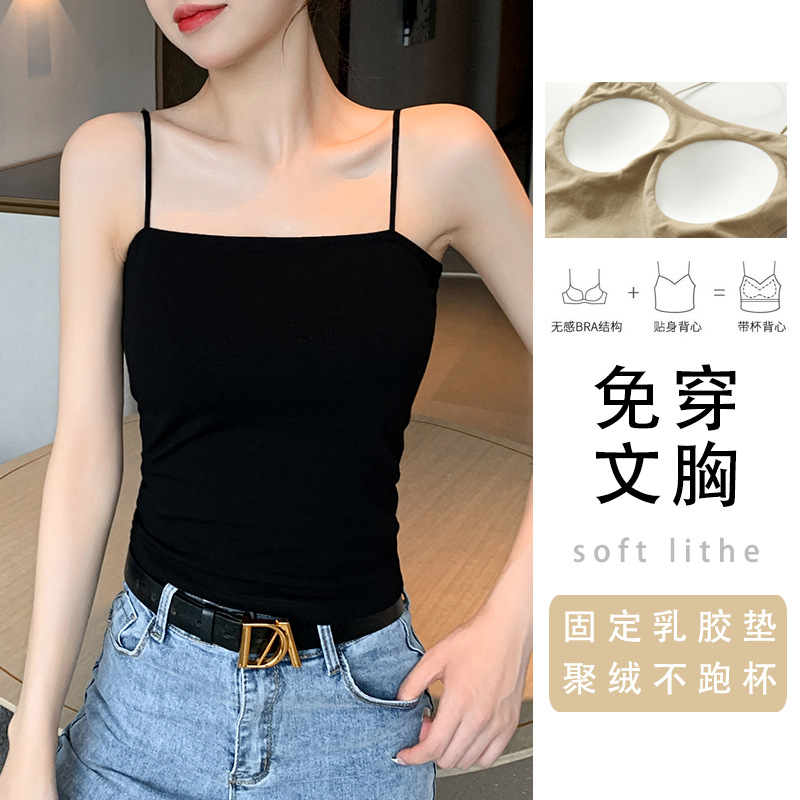 작은 캐미솔 여자의 봄 프랑스 스타일 시크 가슴 패드 블랙 세트 아름다운 백 퓨어 코튼 베이스 탑스토어 가기