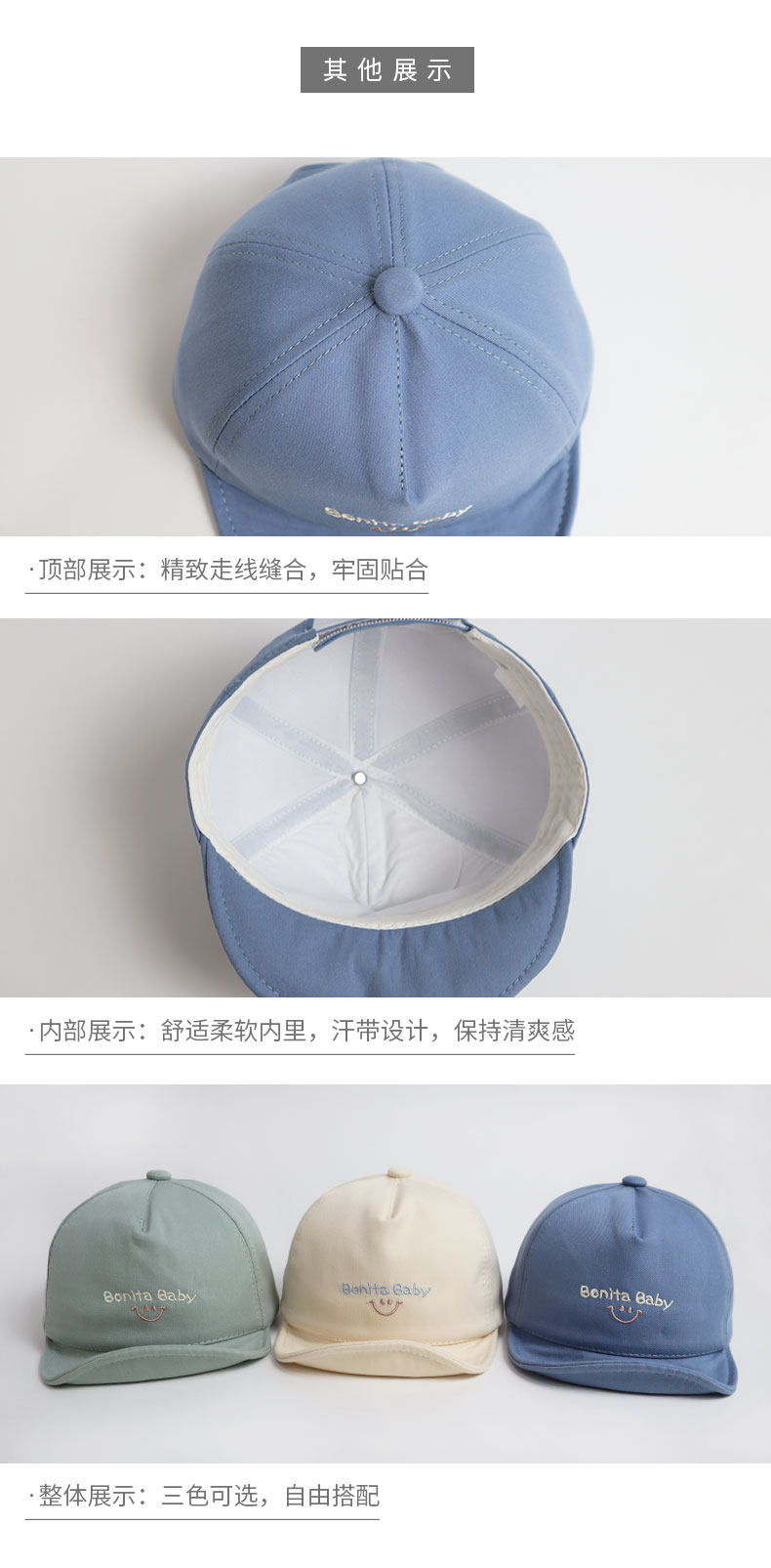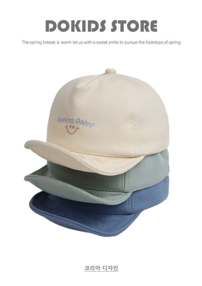 • 블루 컬러 매칭 스마일 캡 + 추천 3-12 개월 (46 야드) 캡 둘레 44-48cm