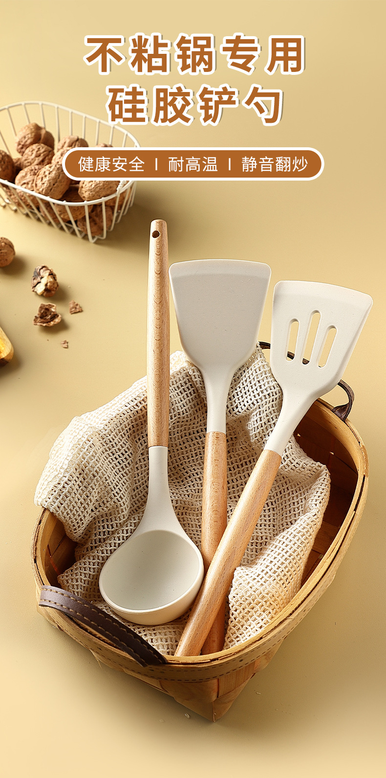 식품등급 실리콘 주걱, 내열성 오믈렛 주걱, 가정용 프라이팬 주걱, 프라이팬 스푼 세트, 조리용 주걱, 주방용품스토어 가기