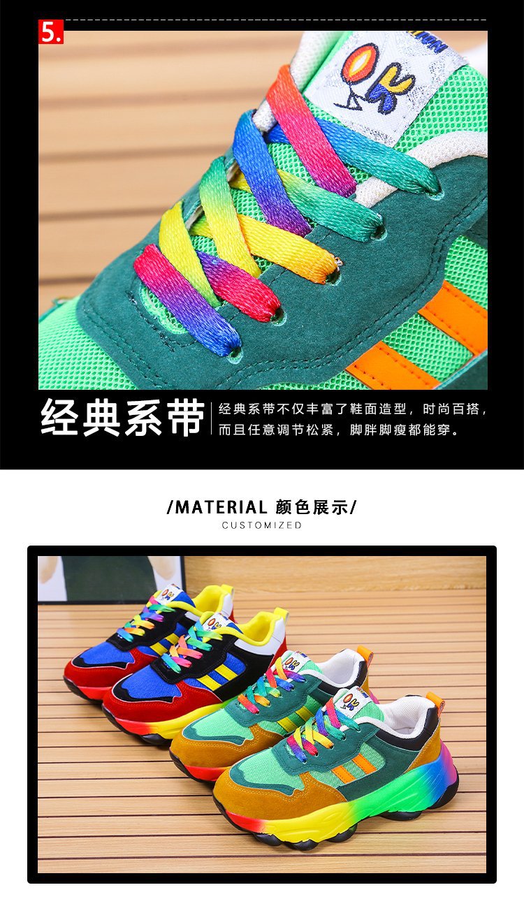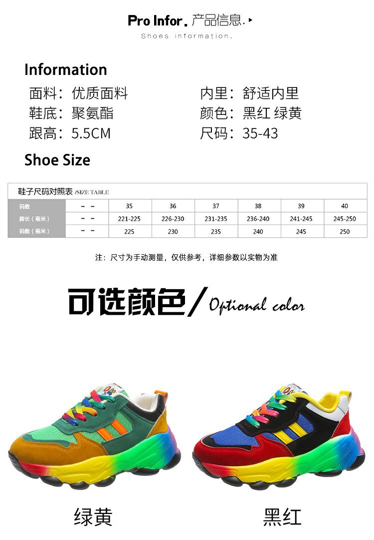 2024 봄, 가을 새로운 대외 무역 대형 두꺼운 밑창 아빠 신발 캐주얼 컬러 밑창 플랫폼 여성 신발 대형 재고 있음
