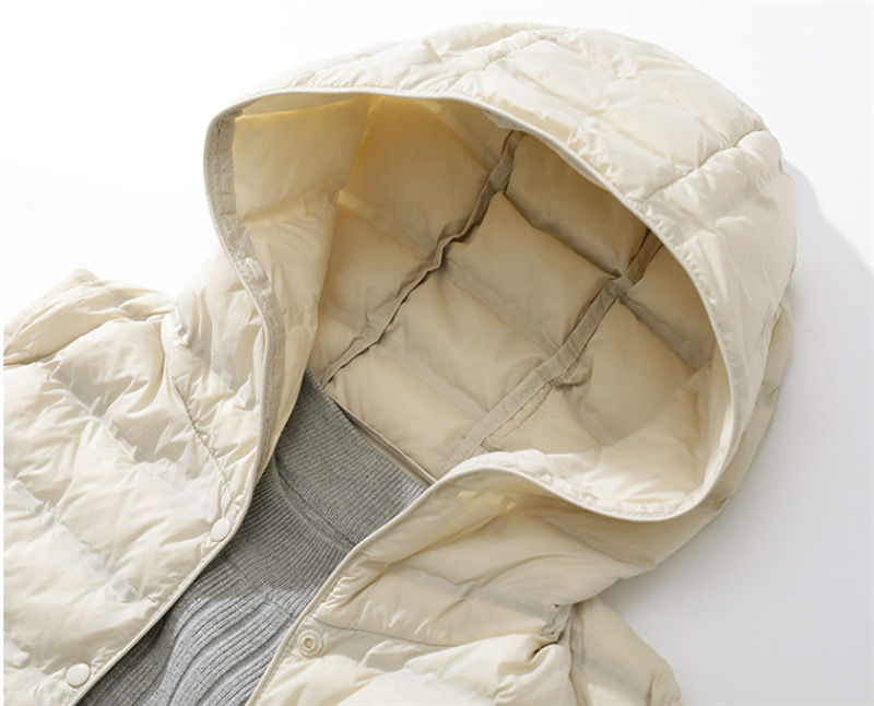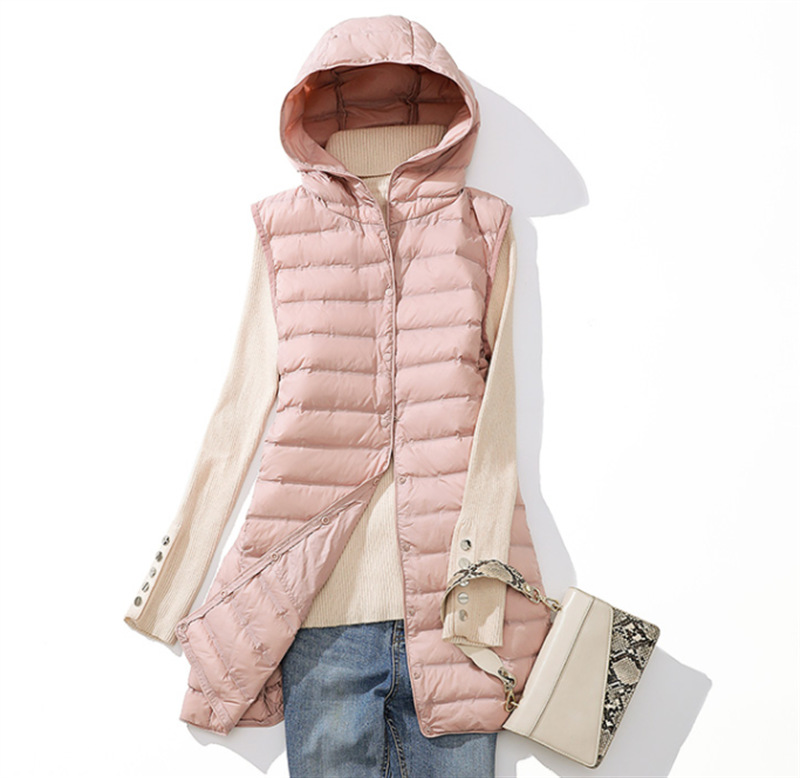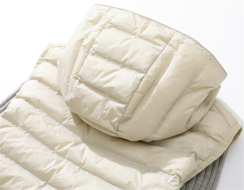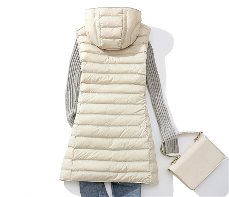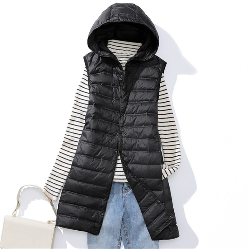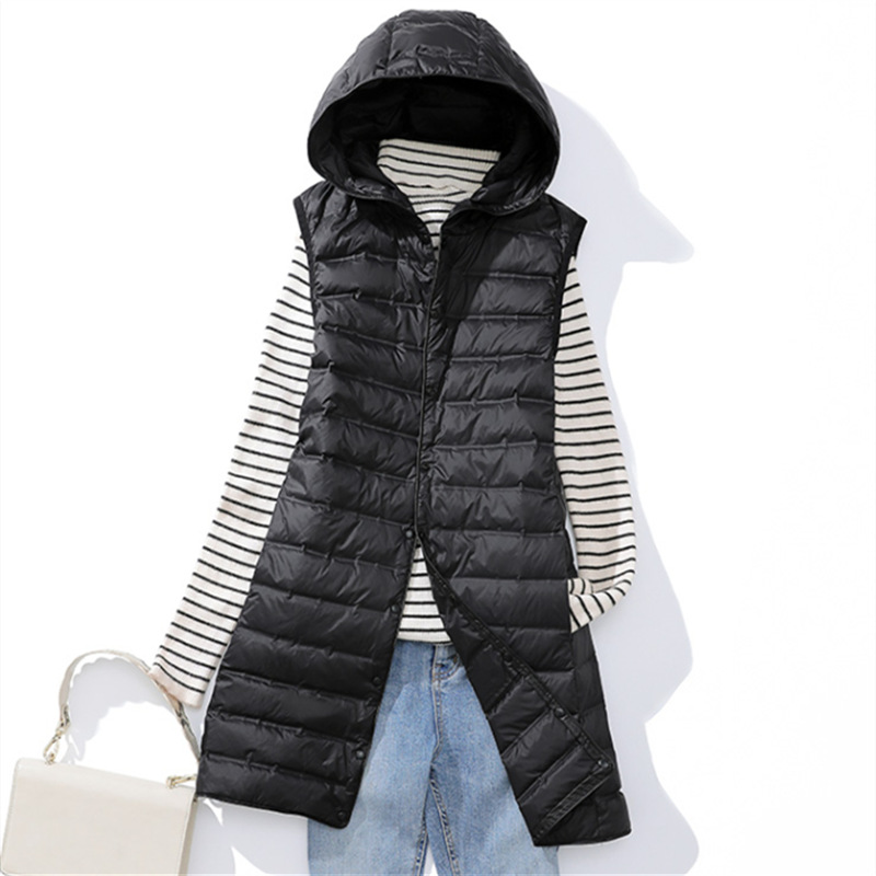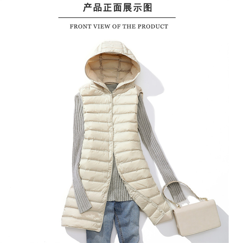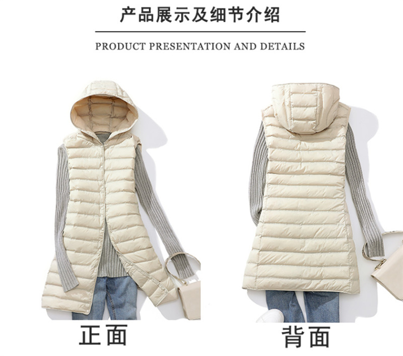 크로스 보더 공급 봄과 가을 새로운 얇은 다운 재킷 조끼 여성의 긴 후드 원활한 압력 접착제 슬림 제조 업체 배치스토어 가기