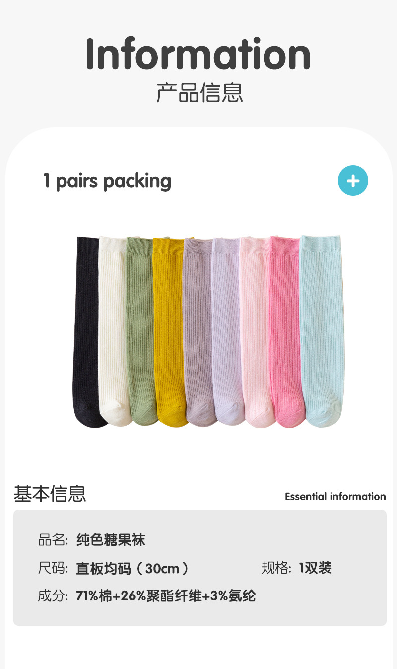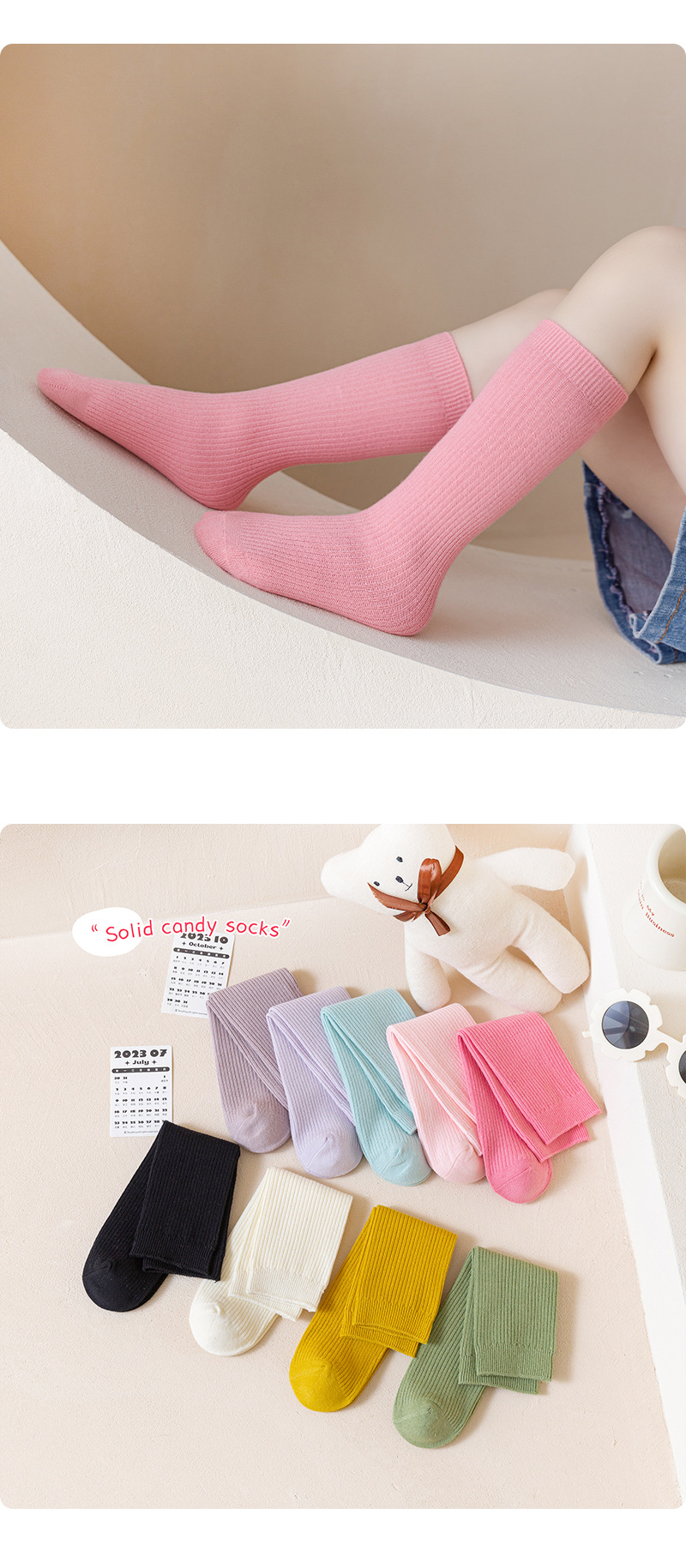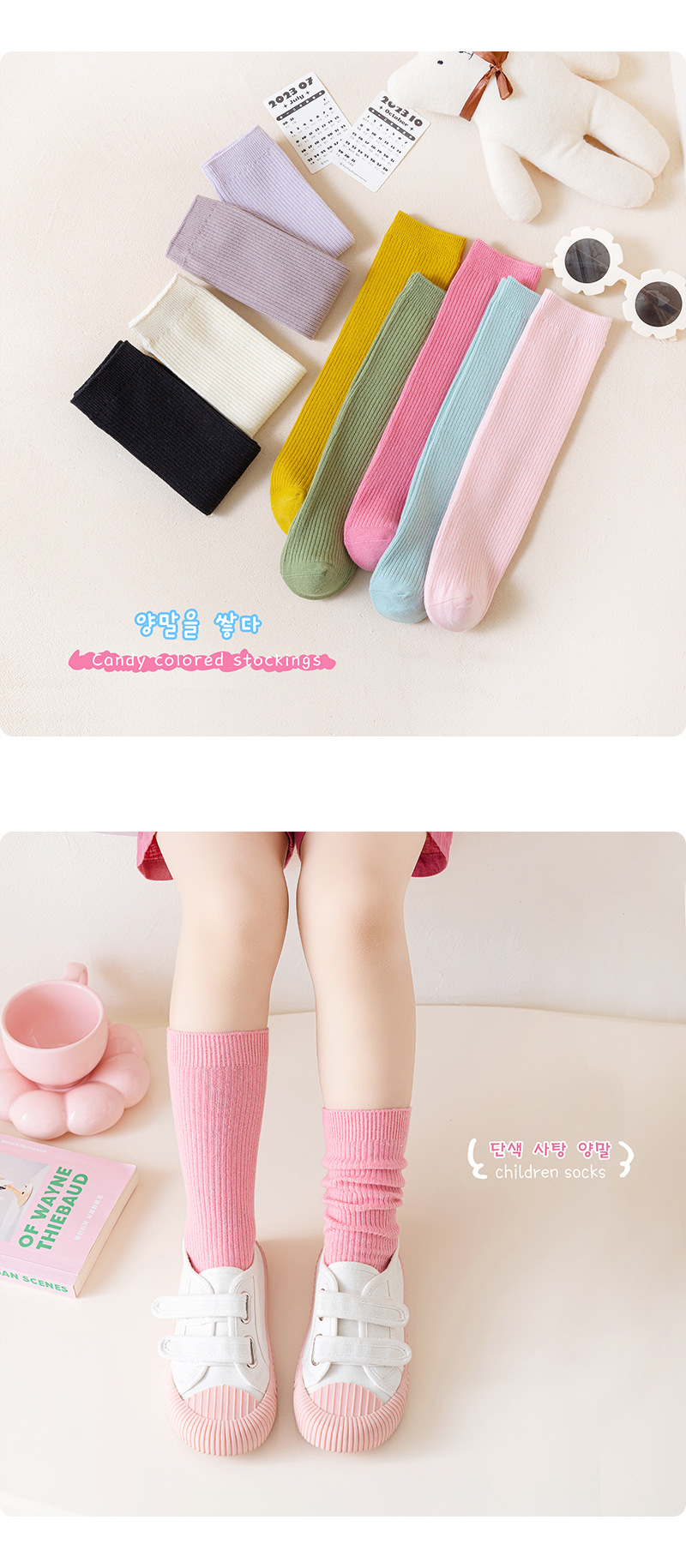 어린이 양말 봄과 가을 새로운면 양말 캔디 컬러 스타킹 2023 여자 단색 다채로운 다크 스트립 더미 양말스토어 가기