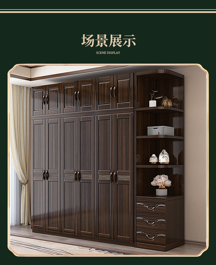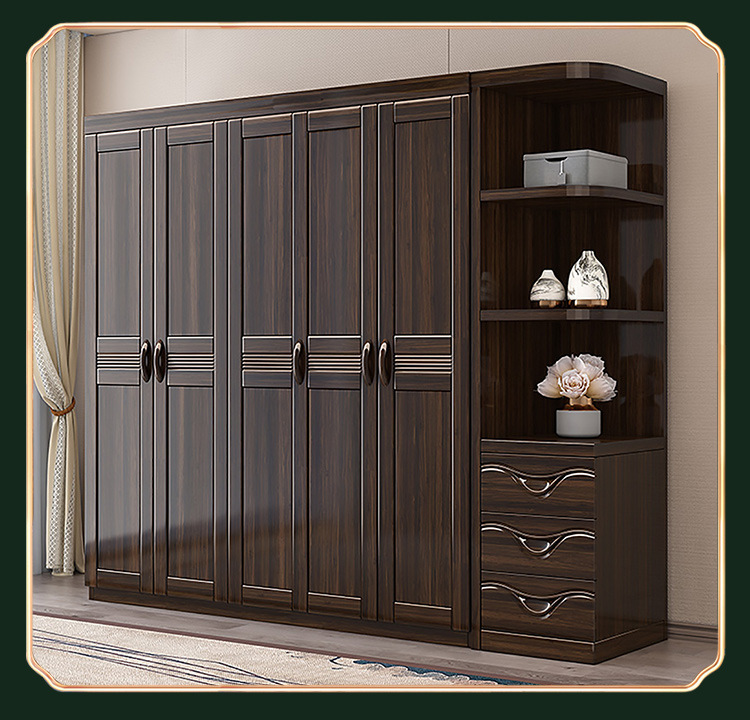 새로운 중국 스타일 풀 솔리드 우드 옷장 퍼플 골드 샌달 우드 라이트 럭셔리 현대 플랫 도어 가정용 보관 침실 나무 옷장스토어 가기