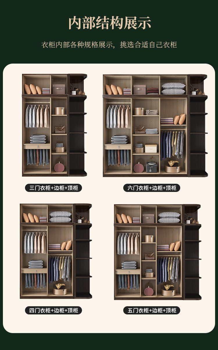 • 측면 캐비닛이없는 6 도어 옷장 상단 캐비닛