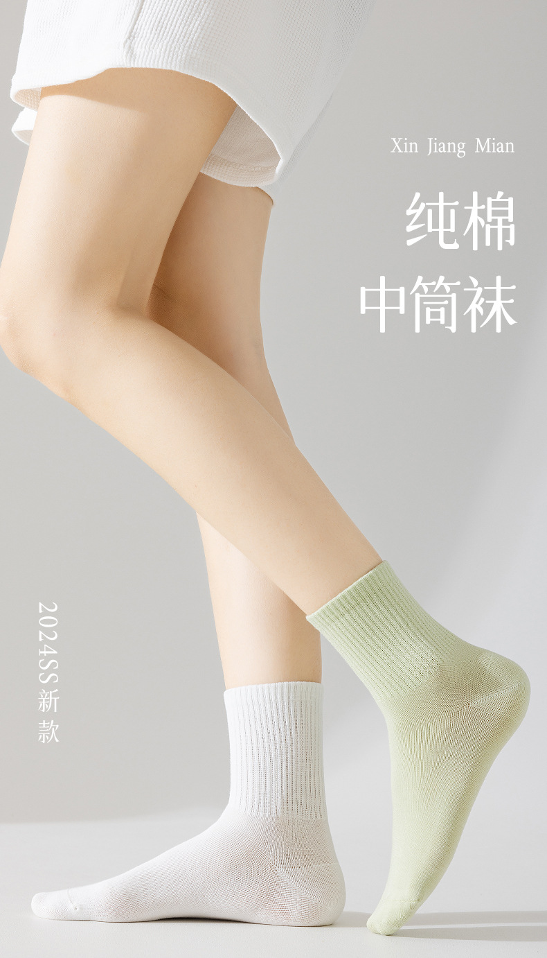 여성용 순면 양말, 가을/봄/여름용, 중간 길이/짧은 길이, 여성용 검정색 항균 순면 양말, 흰색 무봉제 면 양말, 편안함
