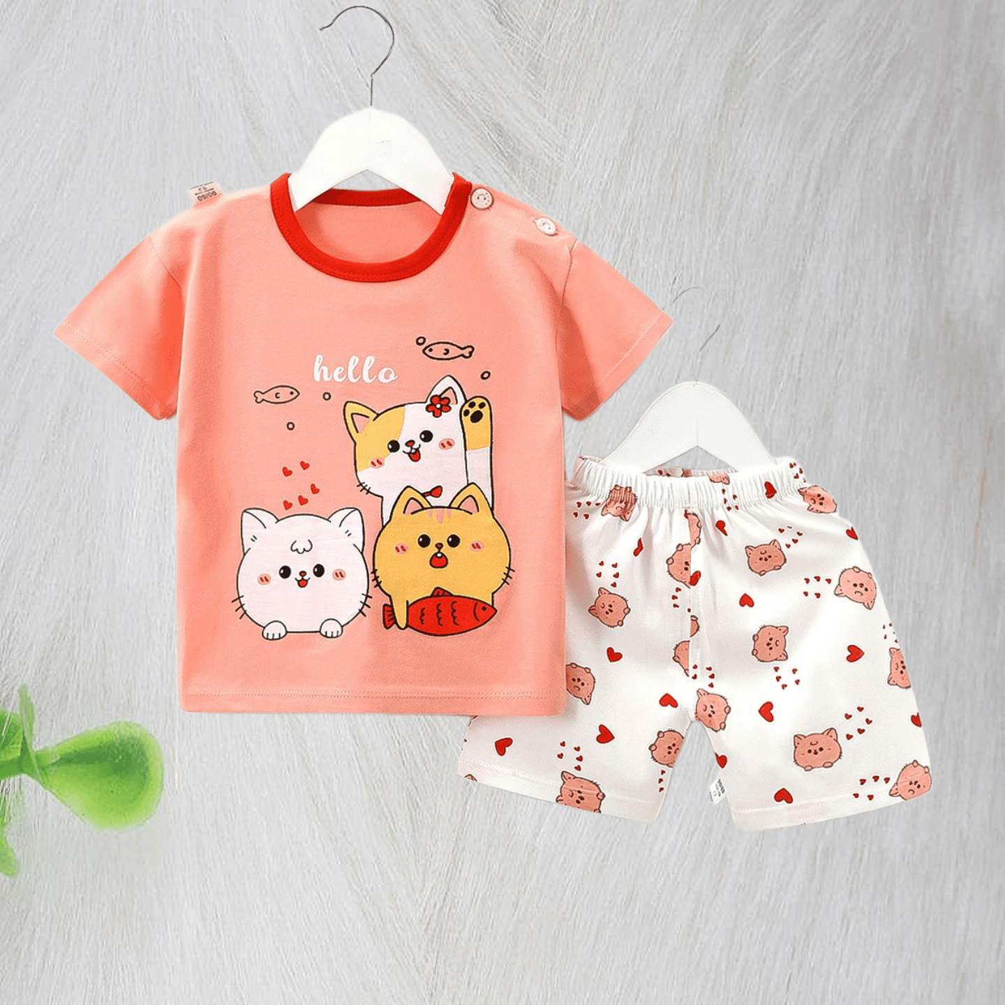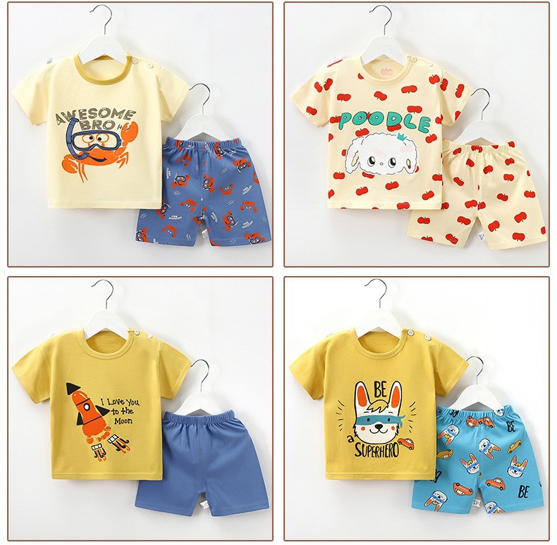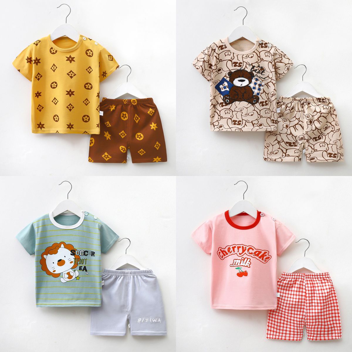 어린이 반팔 세트 면 여름 아기 옷 한국 여자 티셔츠 소년 의류 대외 무역 아동 의류 도매