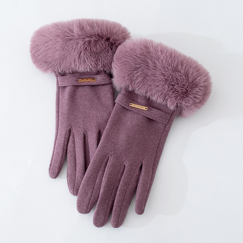 드 벨벳 토끼 모피 여성용 장갑 따뜻한 미끄럼 방지 여성용 승마 기모 두꺼운 야외 겨울 장갑 도매