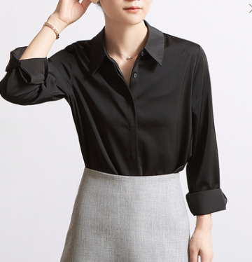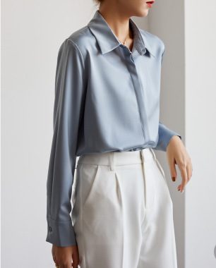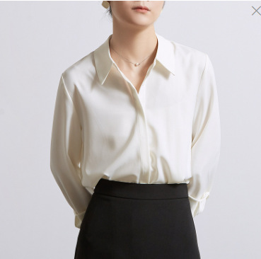 2023 화이트 새틴 셔츠 여성용 긴 소매 봄과 가을 새로운 통근 다크 플래켓 드레이핑 비 다림질 셔츠 여성 탑스토어 가기