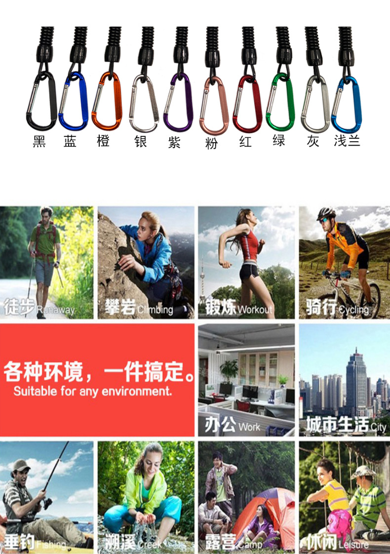 • 와이어 직경 2MM, 원 직경 7MM, 스프링 로프 총 길이 12CM+20 조리개+5#카라비너