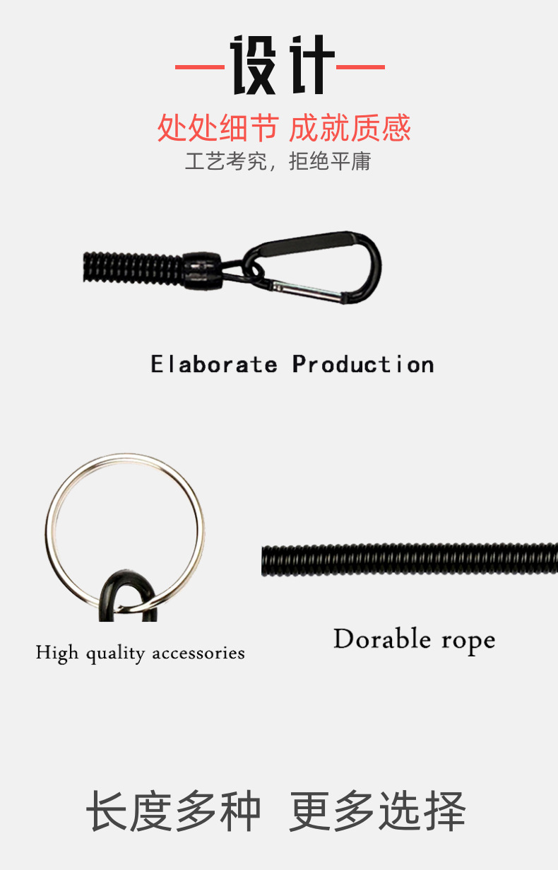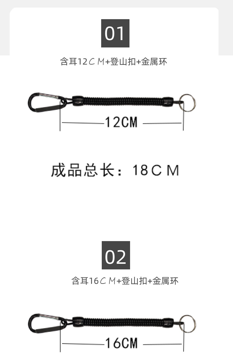• 와이어 직경 2MM, 원 직경 7MM, 스프링 로프 총 길이 16CM+20 조리개+5#카라비너
