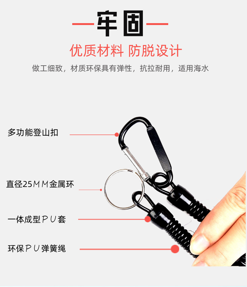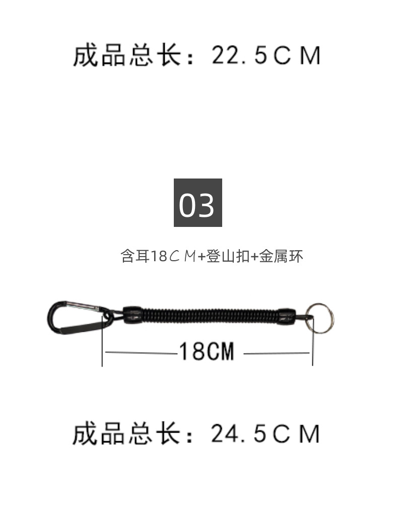 • 와이어 직경 2.5MM, 원 직경 10MM, 스프링 로프 총 길이 18CM+25 조리개+5#카라비너