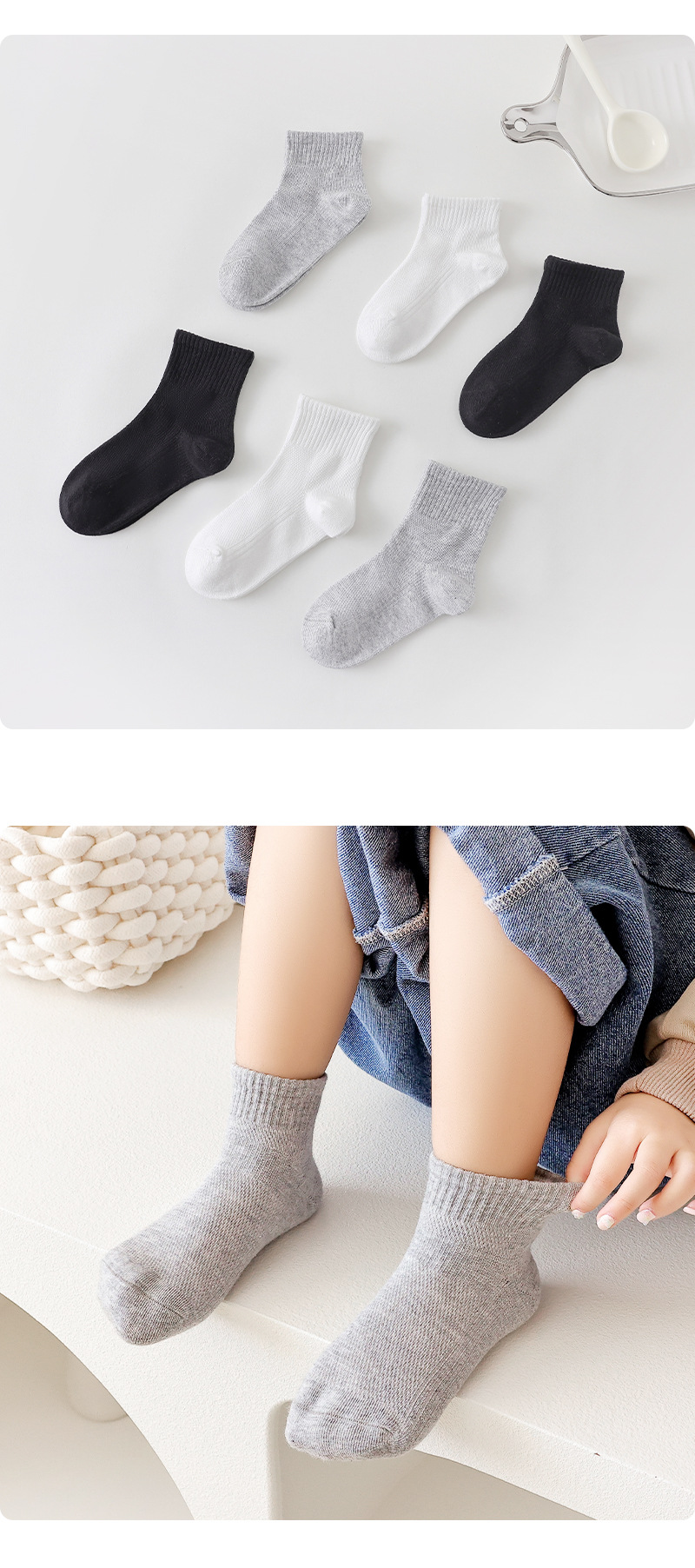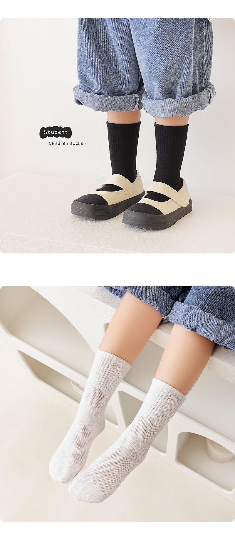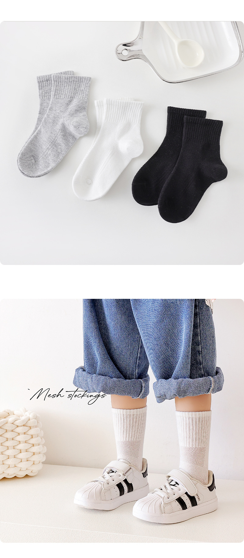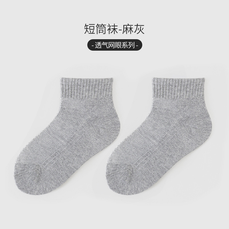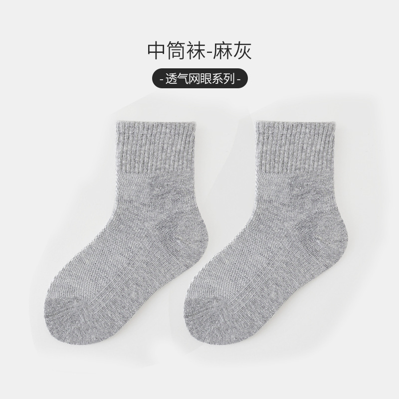 대학 스타일 흑백 회색 어린이 양말 2025 봄과 여름 새로운 메쉬 통기성 단색 소년 소녀 학생 양말스토어 가기