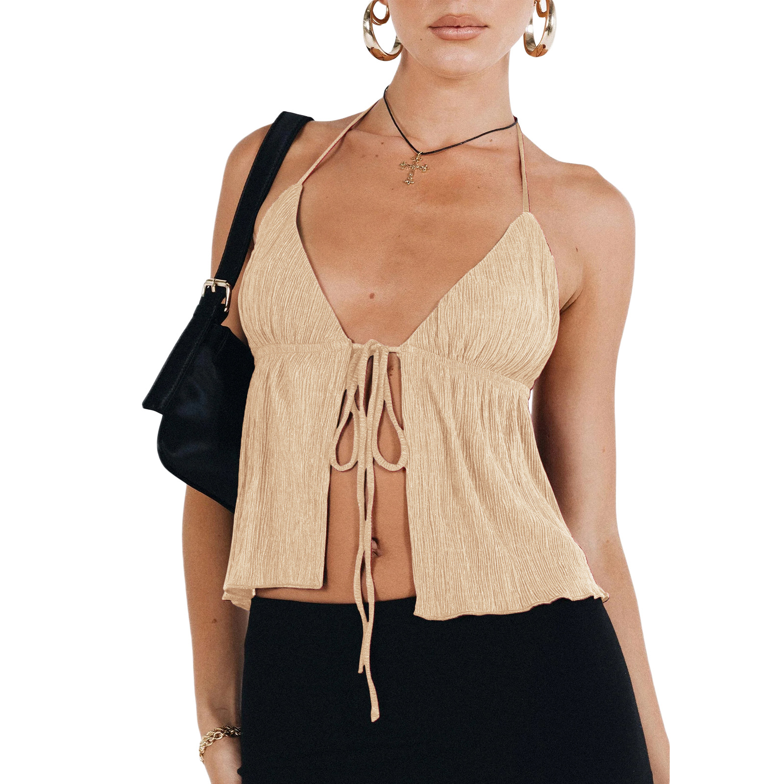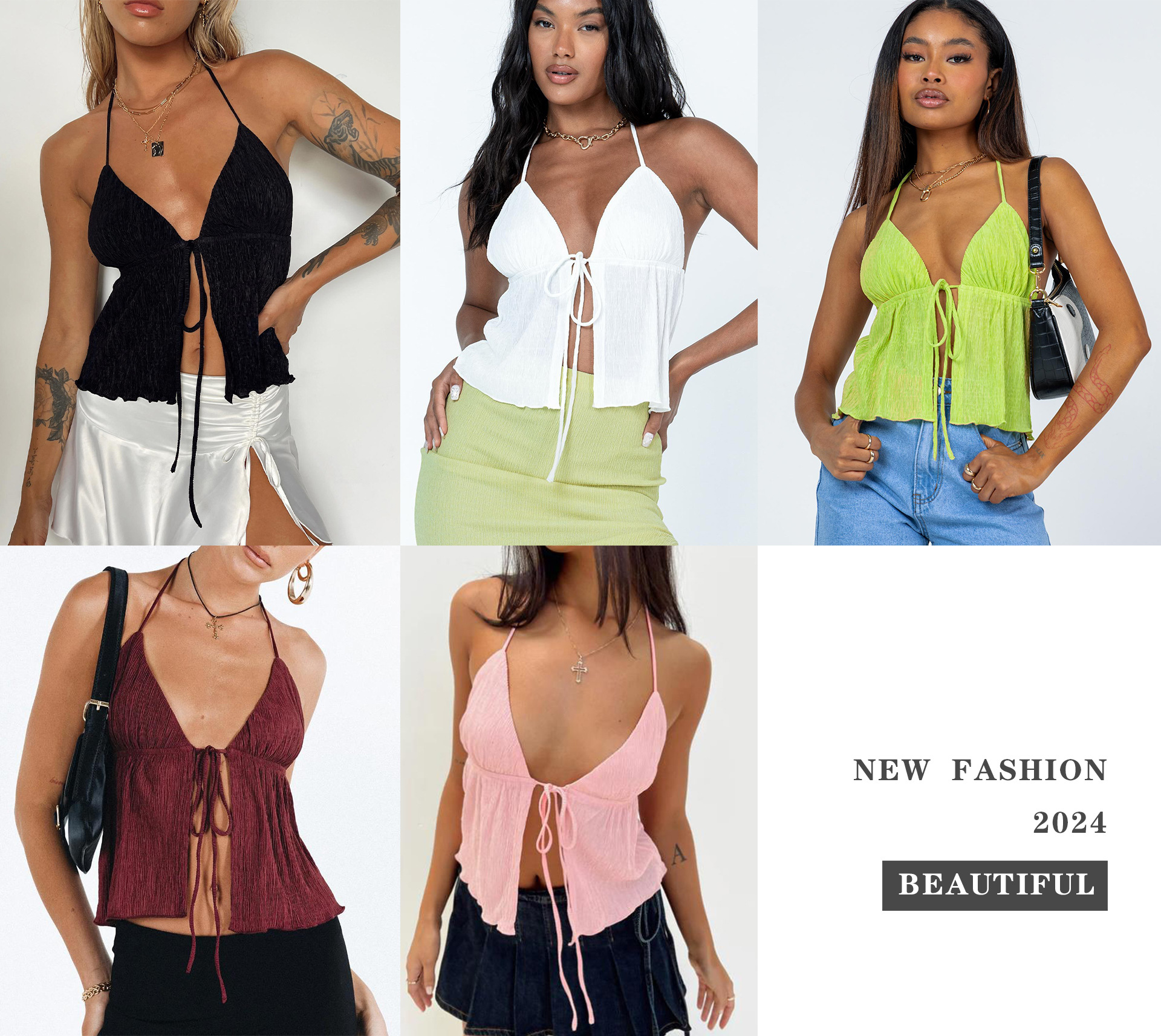 2023 봄과 여름 새로운 여성 조끼 슬링 유럽과 미국의 섹시한 레이스 업 드로우 스트링 슬링 셔츠
