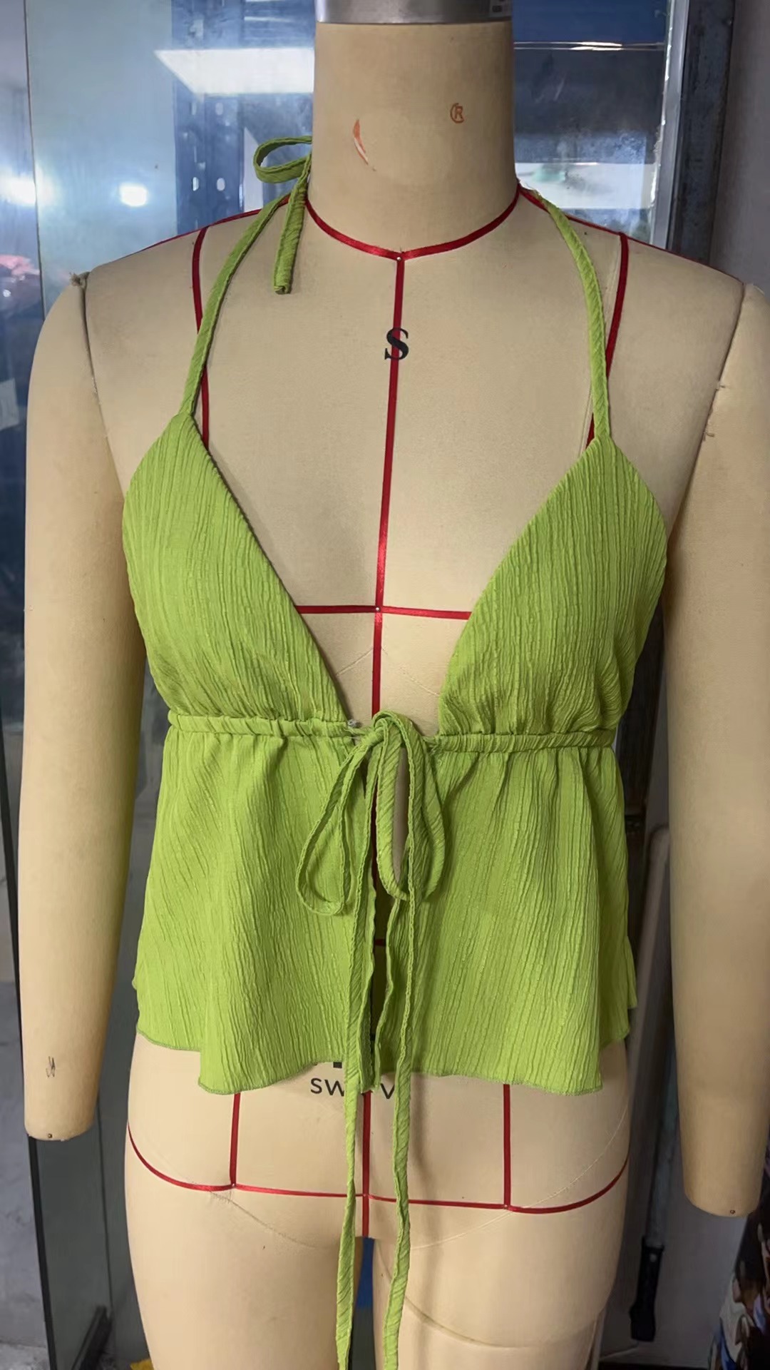 2023 봄과 여름 새로운 여성 조끼 슬링 유럽과 미국의 섹시한 레이스 업 드로우 스트링 슬링 셔츠스토어 가기