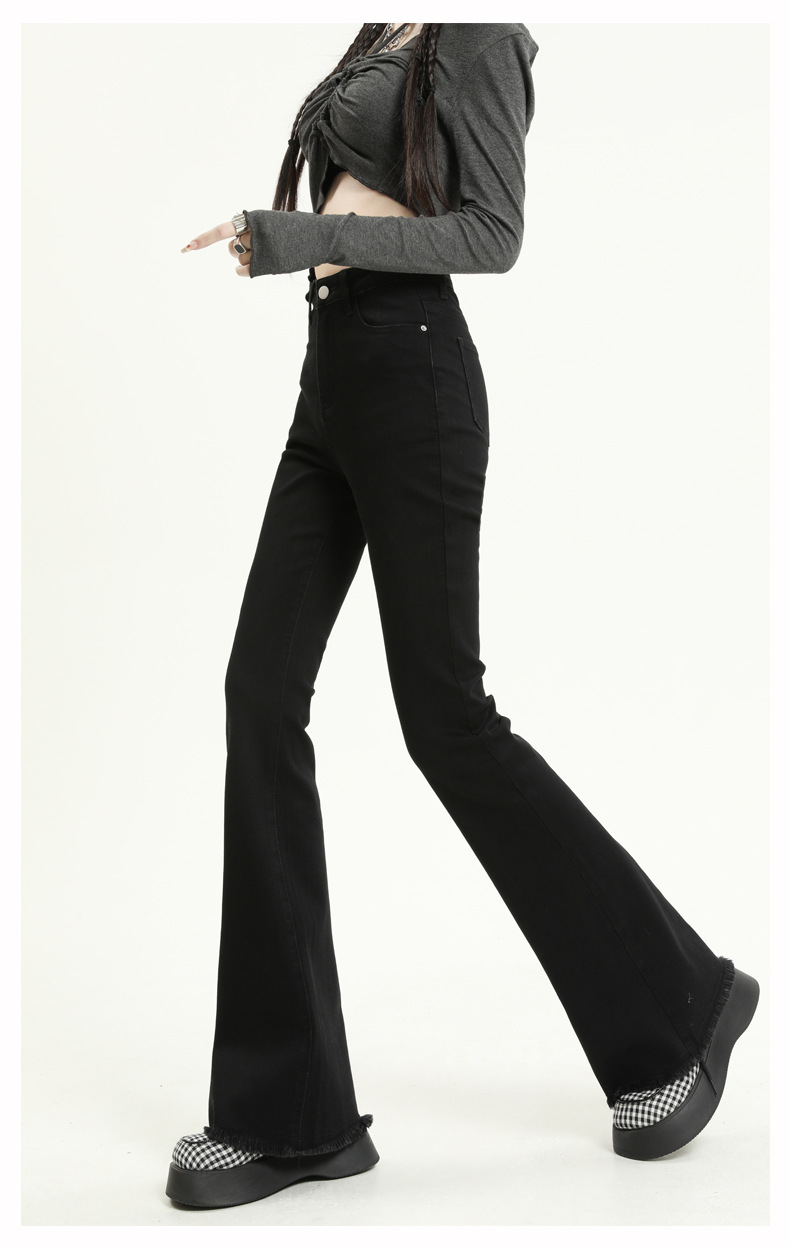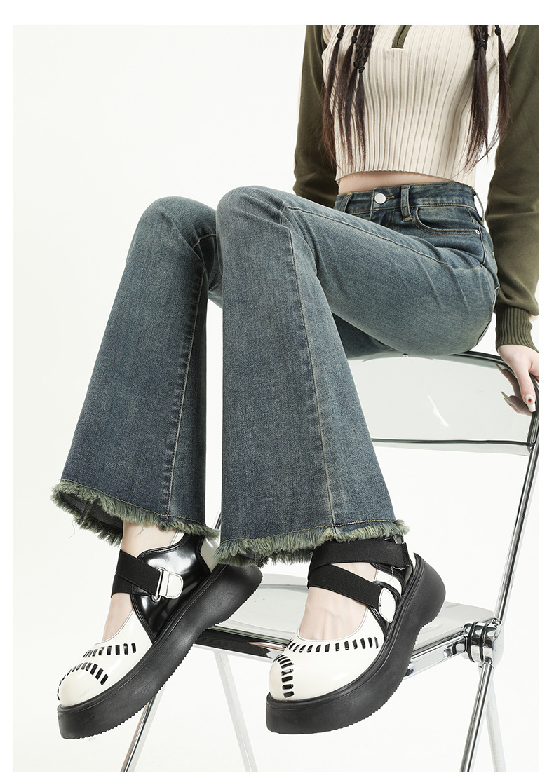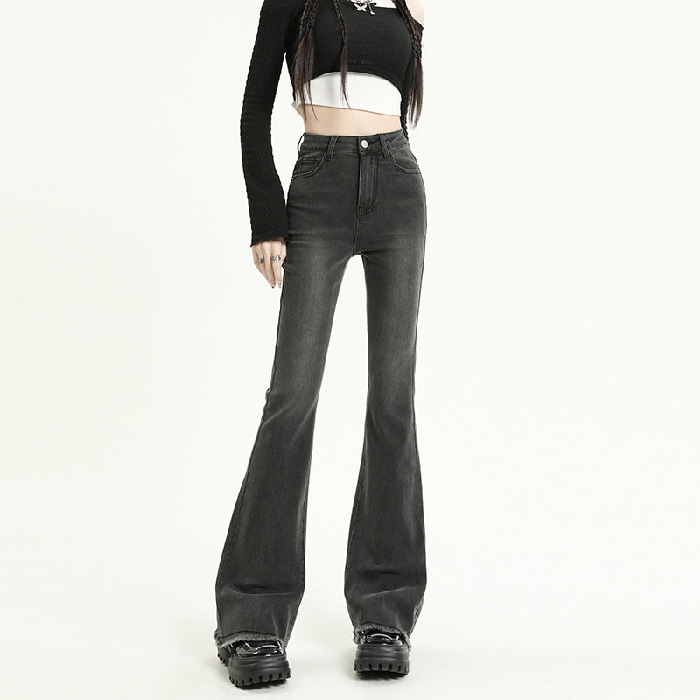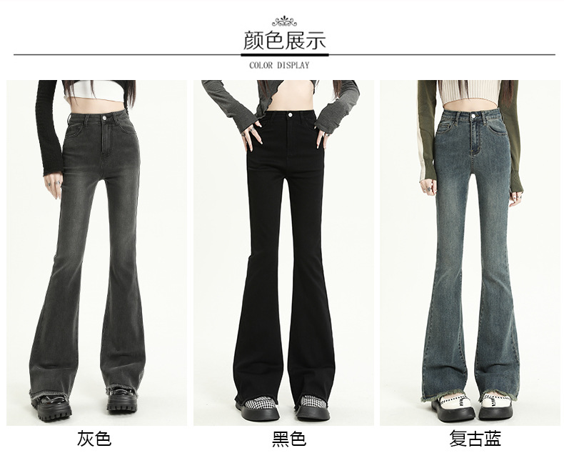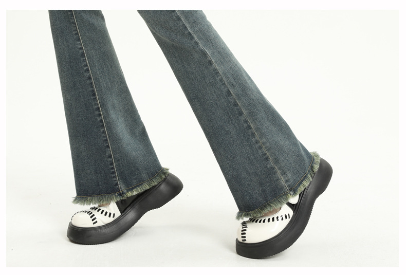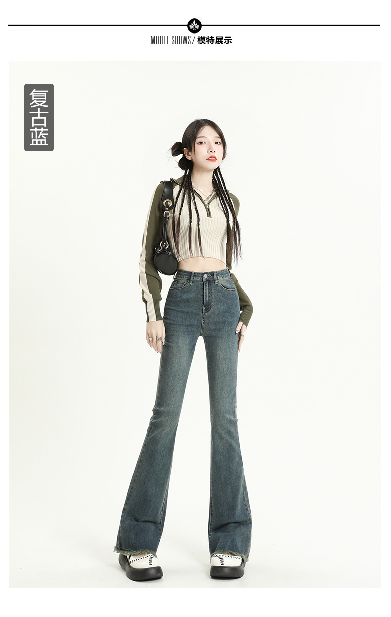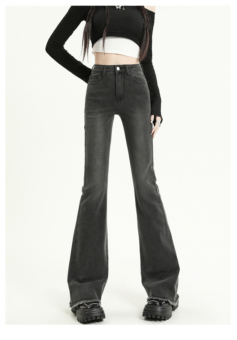 여성용 마이크로 플레어 진, 가을 신상, 한국 스타일, 슬림핏, 하이웨이스트, 키 작은 여성용, 데미지 플레어 팬츠스토어 가기