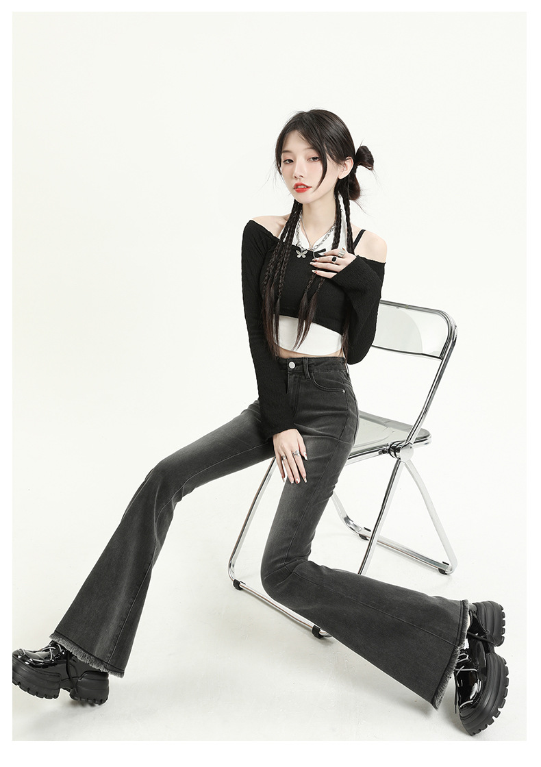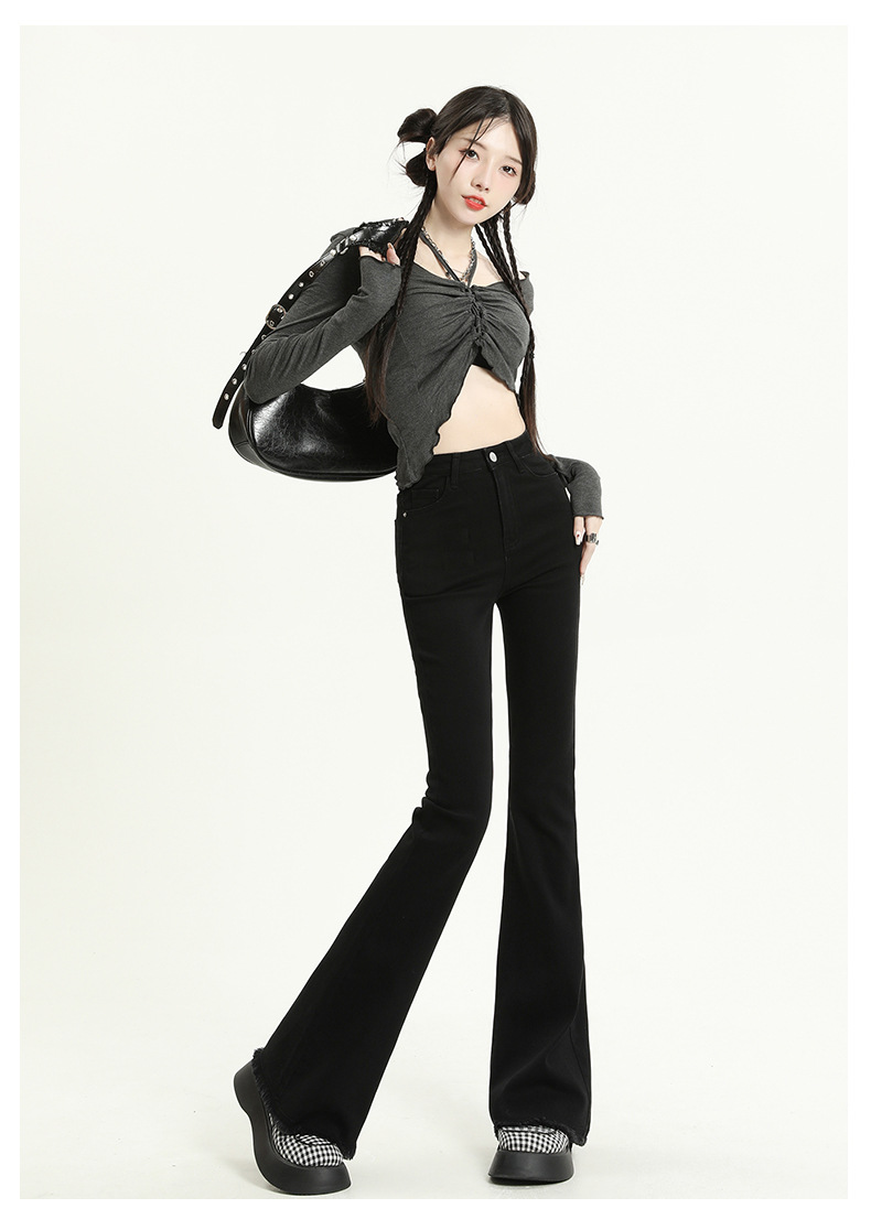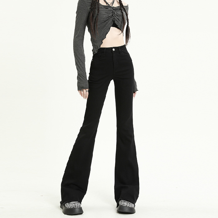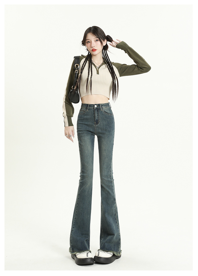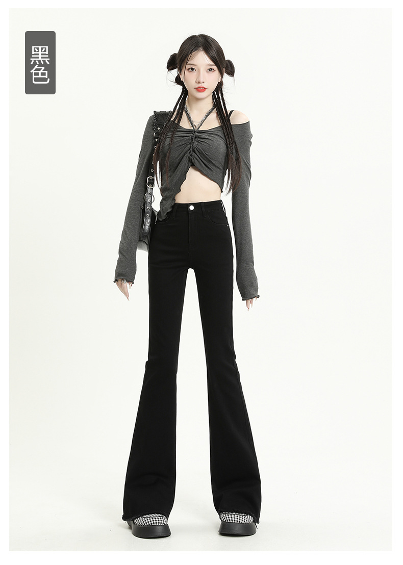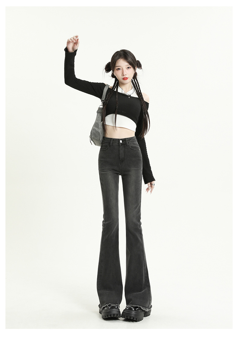 여성용 마이크로 플레어 진, 가을 신상, 한국 스타일, 슬림핏, 하이웨이스트, 키 작은 여성용, 데미지 플레어 팬츠스토어 가기